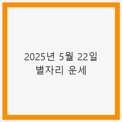 2025년 5월 22일은 각 별자리마다 특별한 의미와 흐름이 있는 날입니다. 서로의 진심을 나누고, 직감에 귀 기울이며, 새로운 경험에 열린 마음으로 임하면 좋습니다. 오늘의 별자리 운세를 통해 자신을 돌아보며, 더욱 깊이 있는 하루를 만들어나가길 바랍니다.