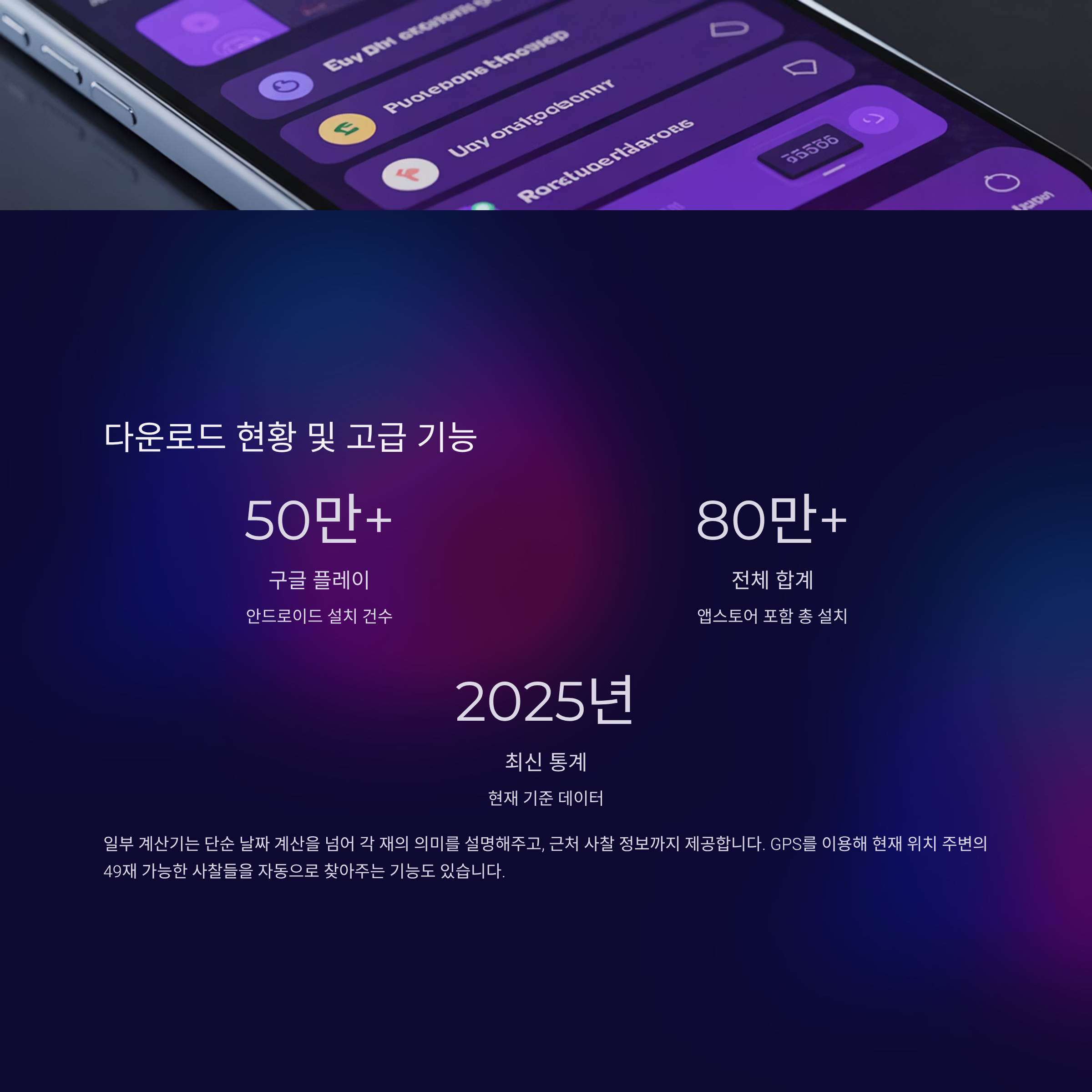 '49재 계산기'를 검색하면 여러 앱이 나오는데, 다운로드 수가 많고 평점이 높은 앱을 선택하면 됩니다. 2025년 최신 통계에 따르면 구글플레이에만 50만 건 이상, 앱스토어까지 합치면 80만 건 이상의 설치가 이루어졌습니다.