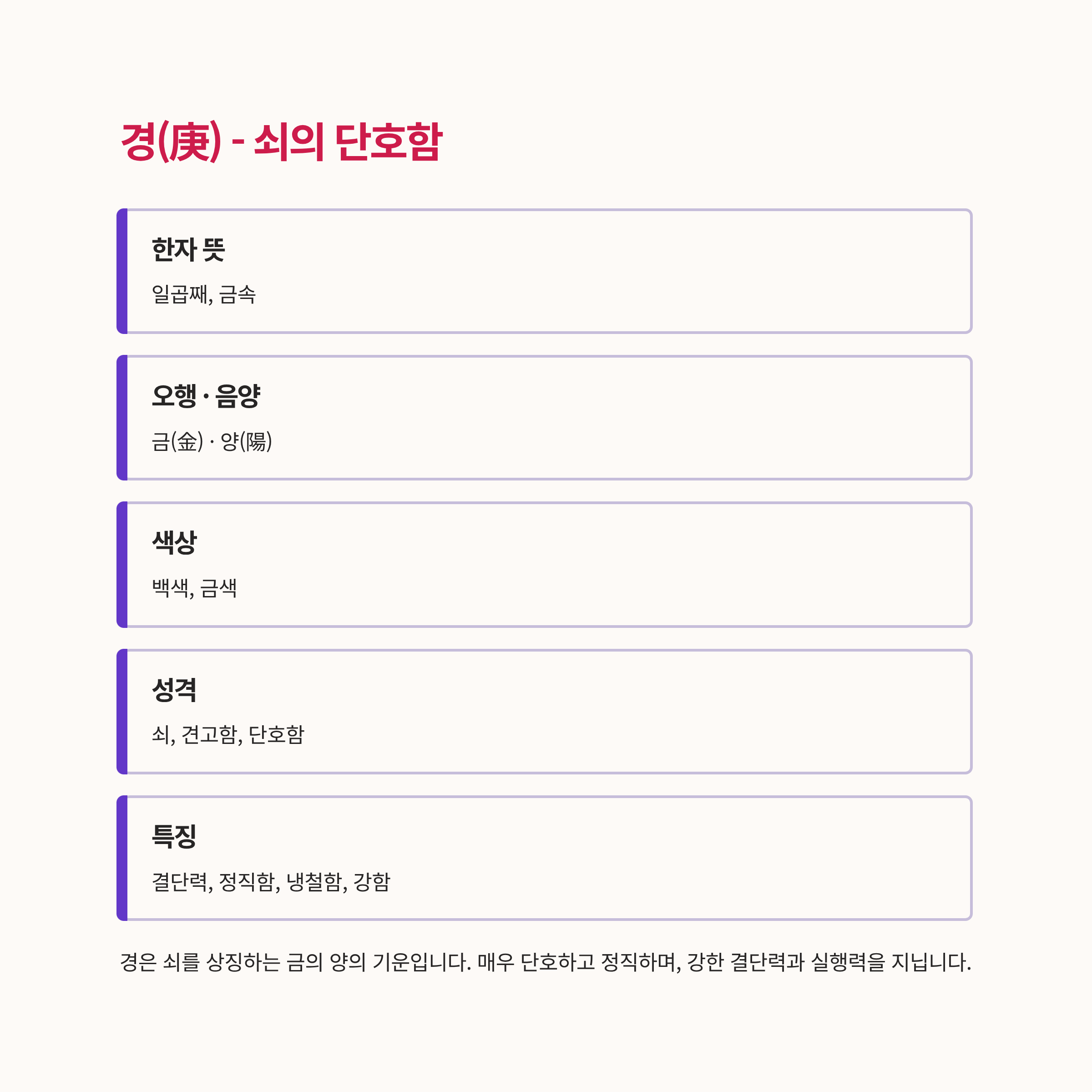 | 금(金) | 경 | 양 | 백색 | 단호 |