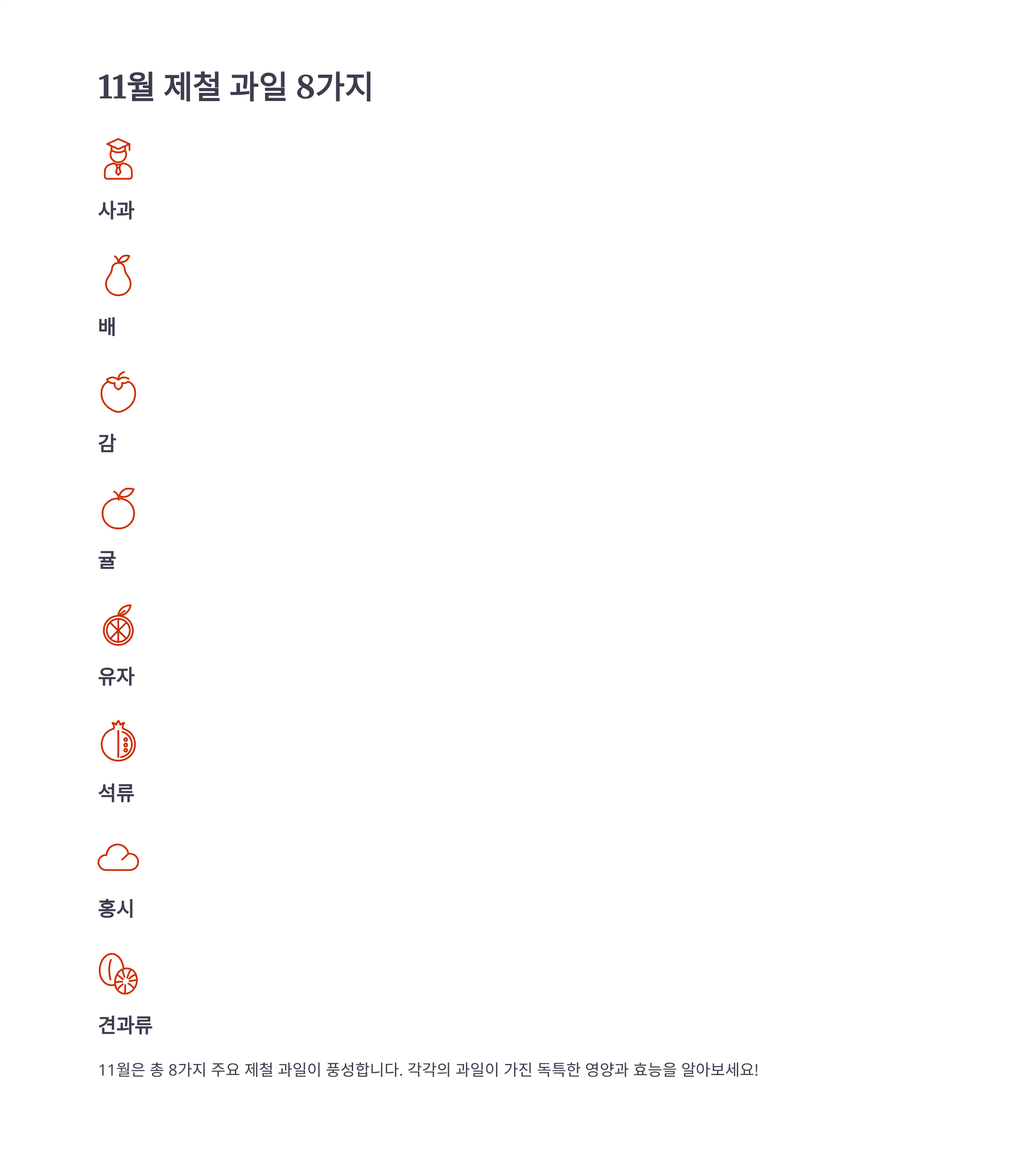 11월은 총 8가지 주요 제철 과일이 풍성합니다: