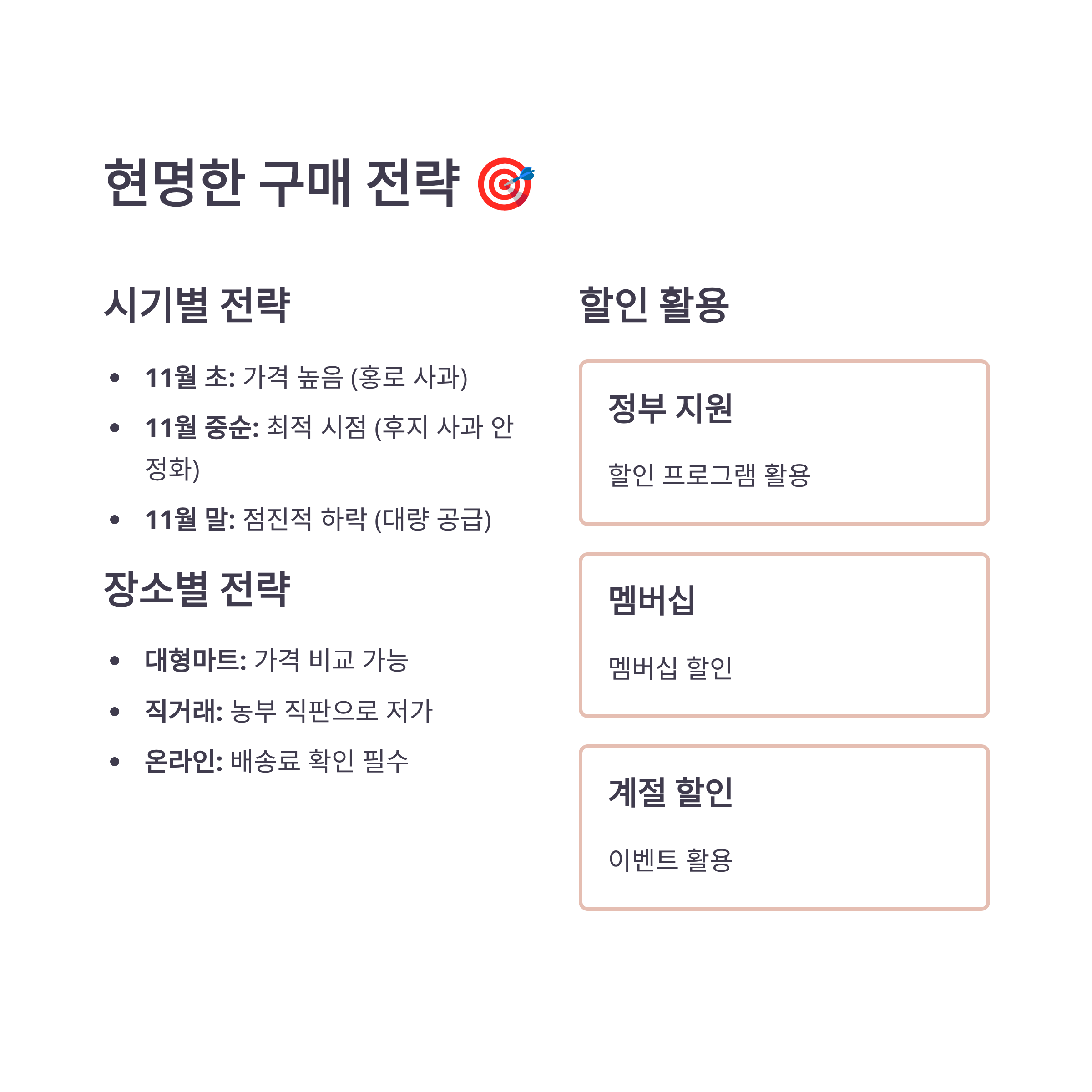 - 11월 중순: 후지 사과 본격 출하로 가격 안정화 예상