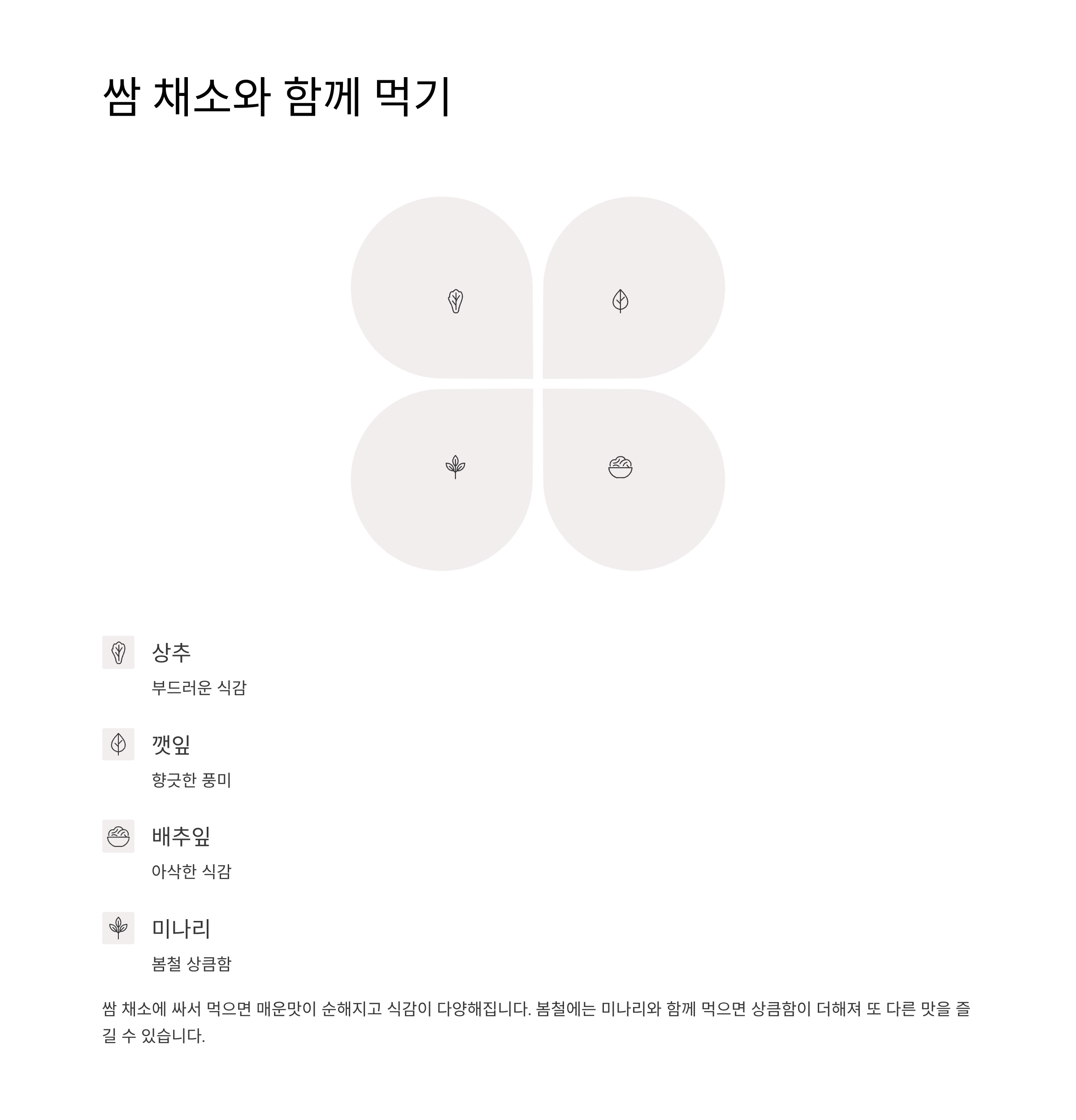 요약: 덮밥, 쌈 채소, 술안주, 볶음밥, 볶음우동 등 무궁무진한 활용법