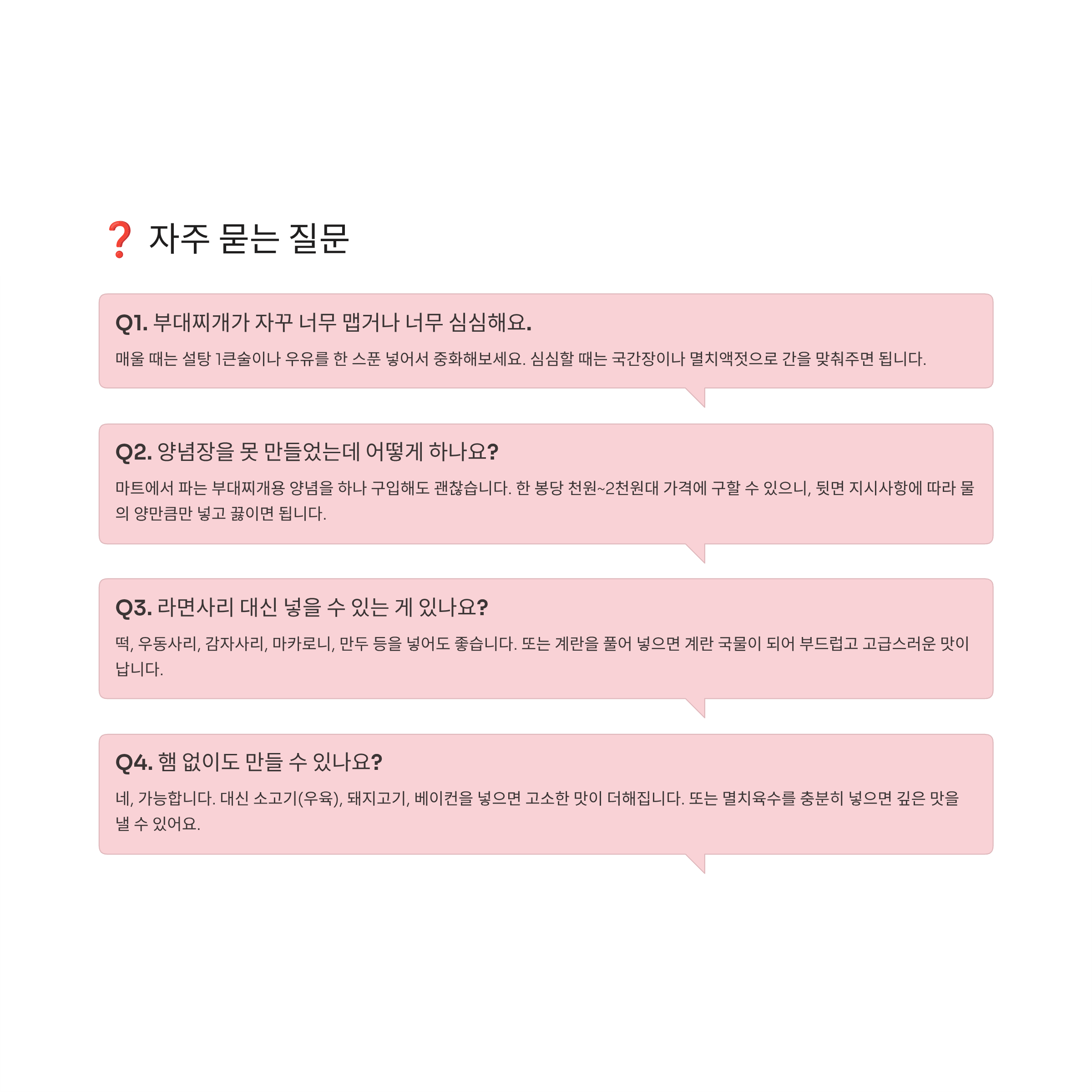 Q1. 부대찌개가 자꾸 너무 맵거나 너무 심심해요.