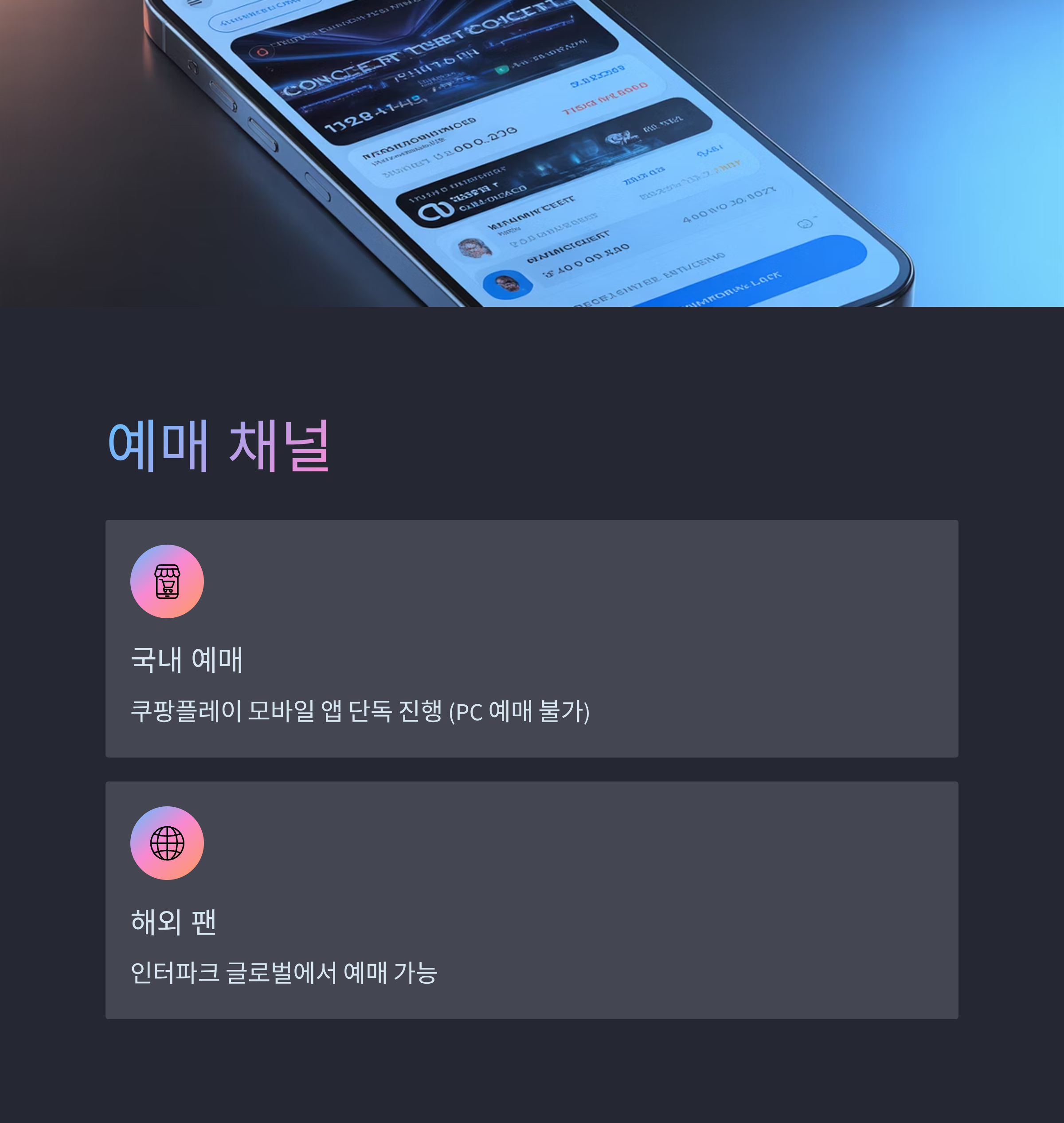 쿠팡플레이 앱 단독 예매이므로 PC 예매는 불가능합니다.
