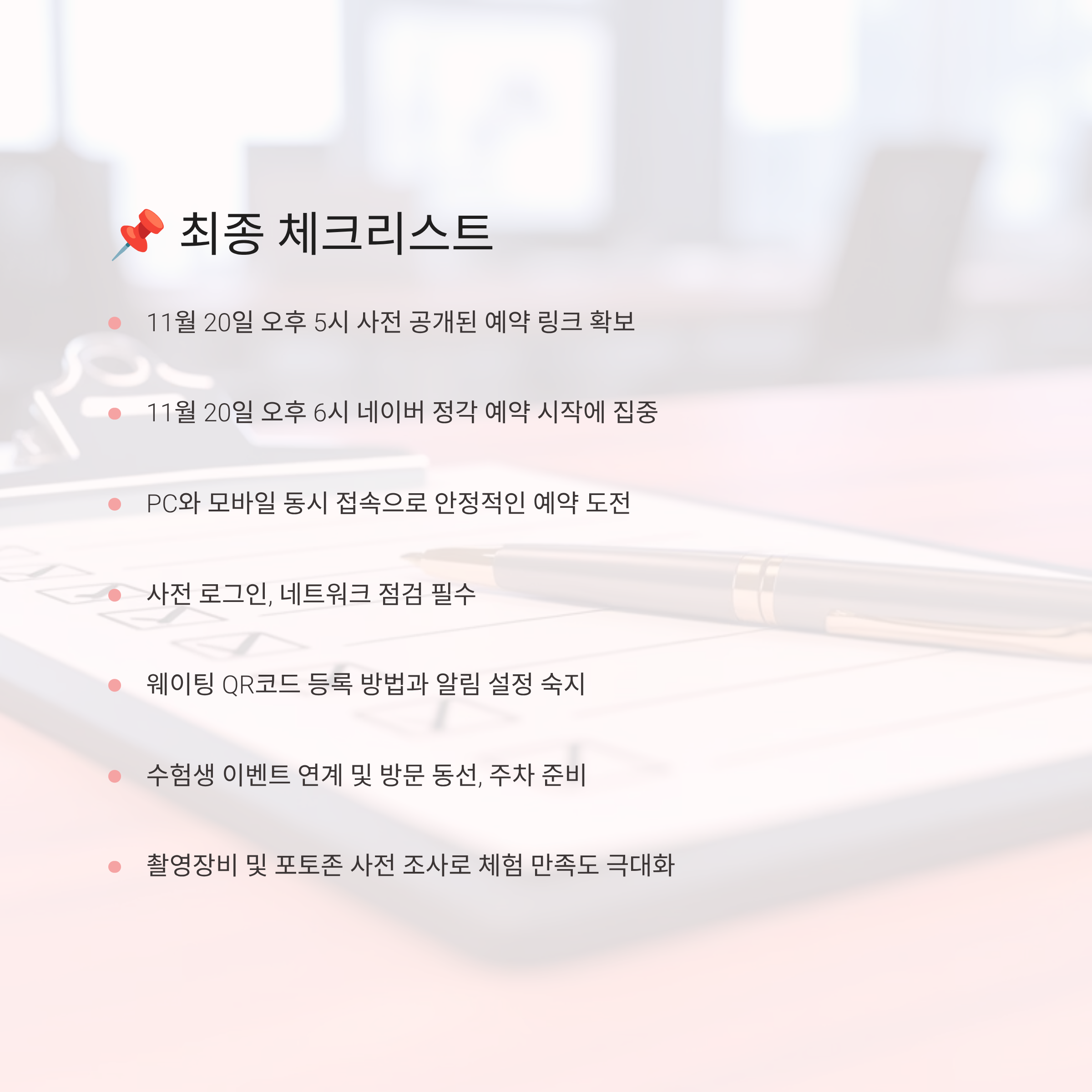 - 11월 20일 오후 6시 네이버 정각 예약 시작에 집중