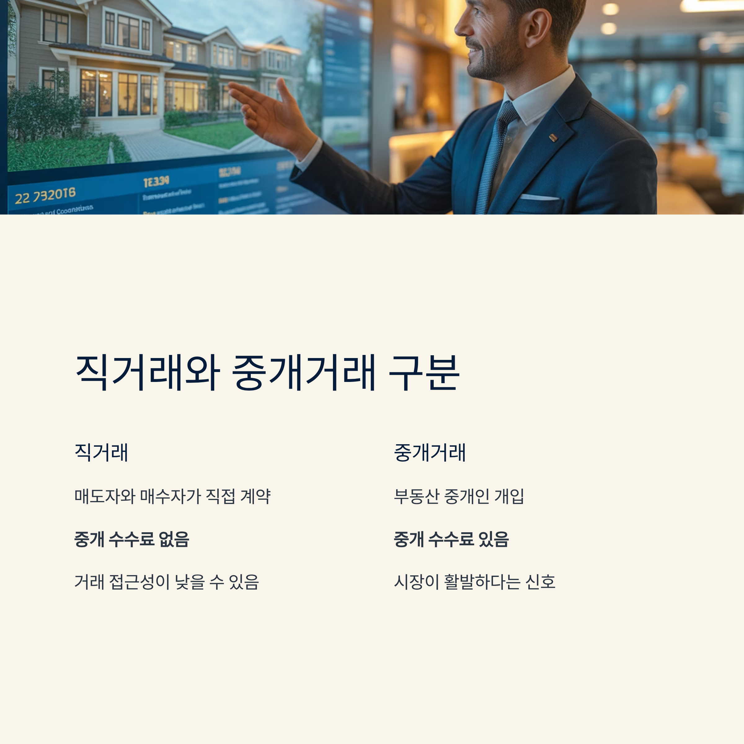 - 직거래: 매도자와 매수자가 직접 계약 (중개 수수료 없음)