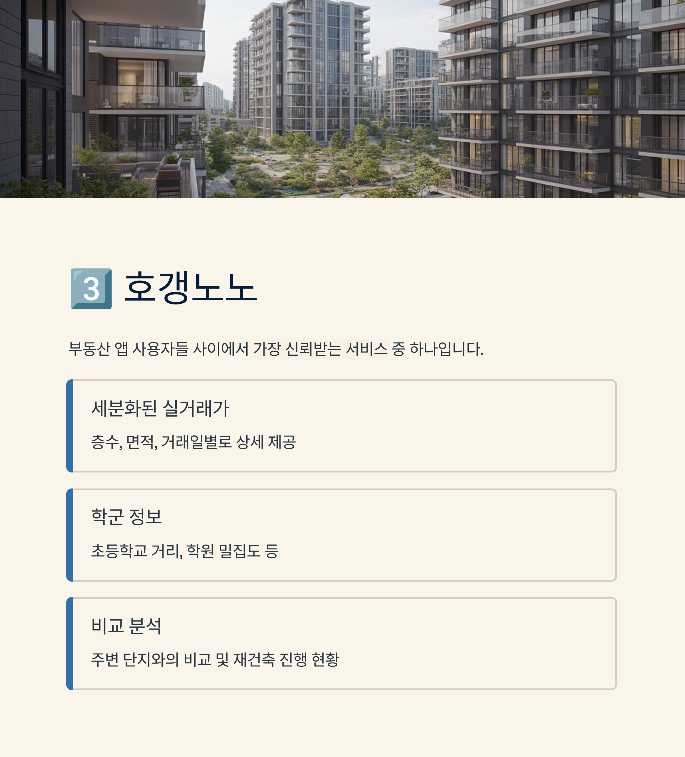 부동산 앱 사용자들 사이에서 가장 신뢰받는 서비스 중 하나입니다. 단순 실거래가 정보를 넘어 생활 밀착형 정보까지 제공합니다.
