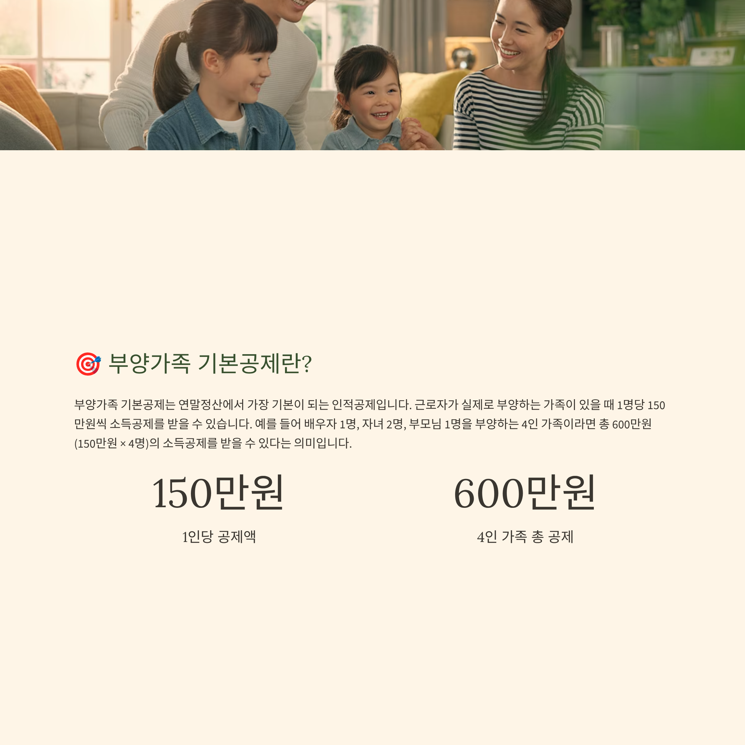 🎯 부양가족 기본공제란: 1인 150만원, 4인 600만원 소득공제