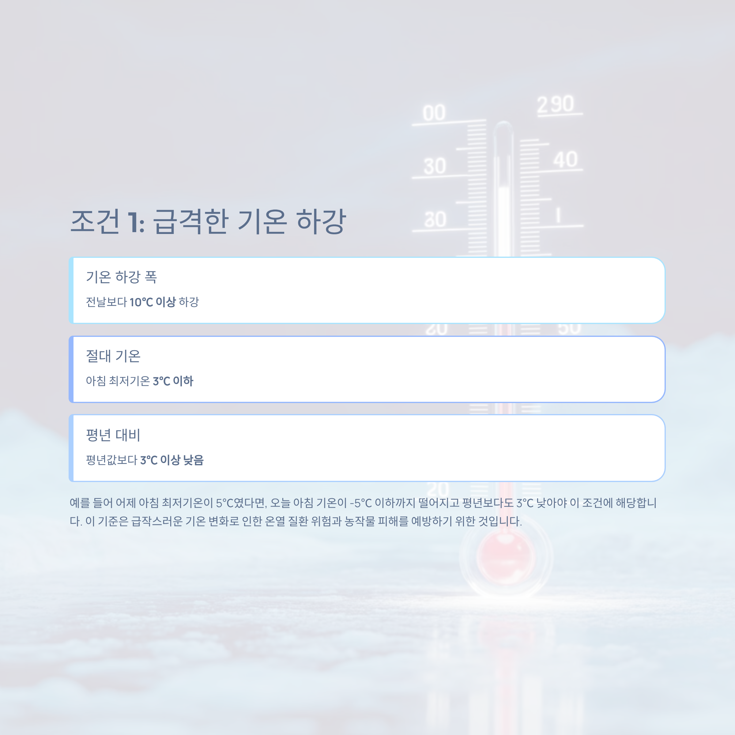 조건 3: 급격한 저온으로 인한 중대한 피해 예상