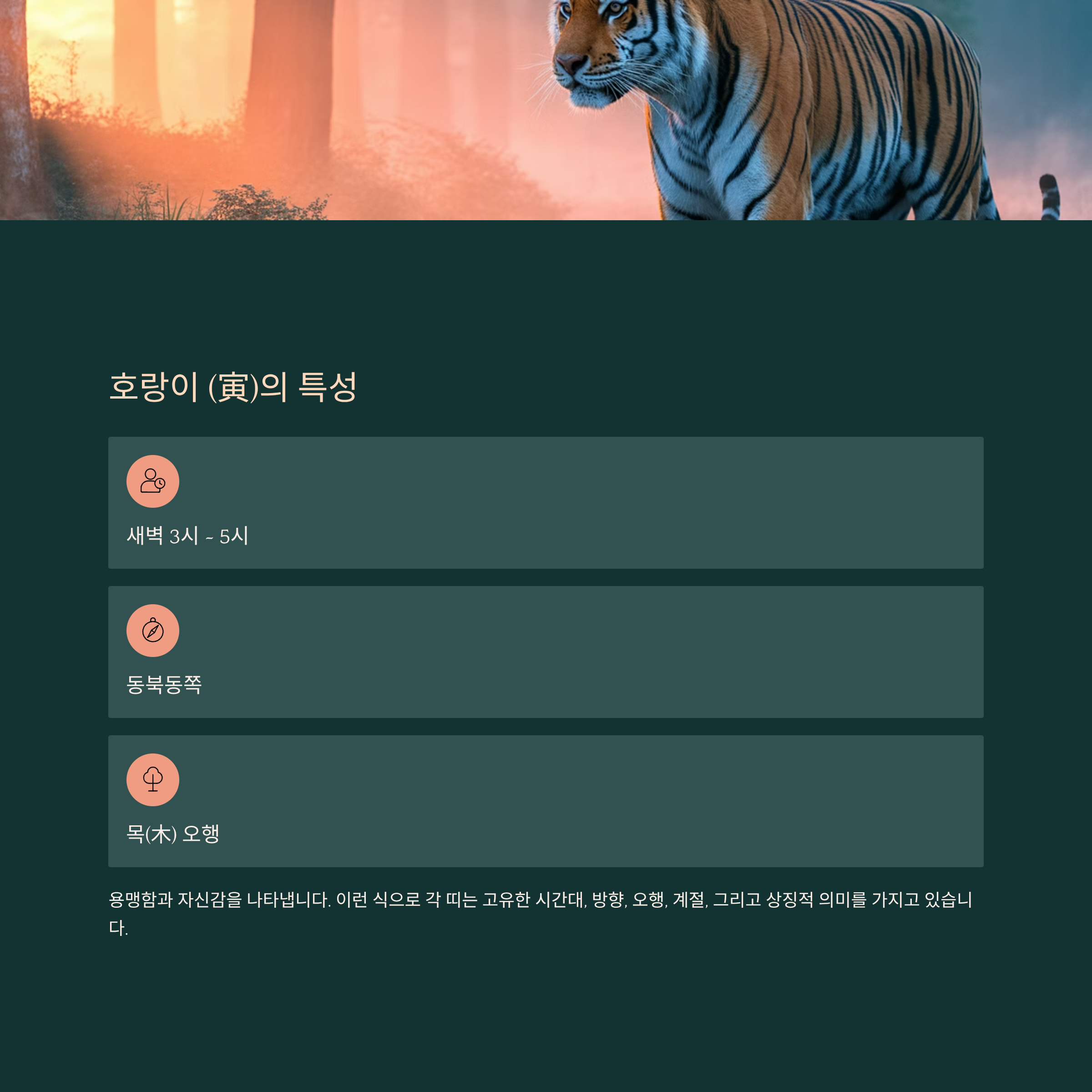 호랑이(寅)는 새벽 3시부터 5시까지이고, 동북동쪽입니다.