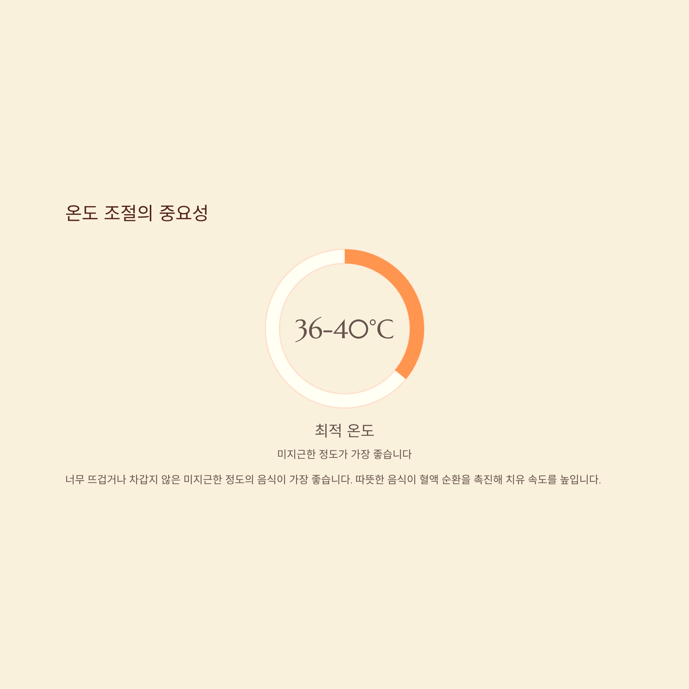 온도도 조절해야 합니다. 너무 뜨겁거나 차갑지 않은 미지근한 정도의 음식이 가장 좋습니다. 따뜻한 음식이 혈액 순환을 촉진해 치유 속도를 높입니다.
