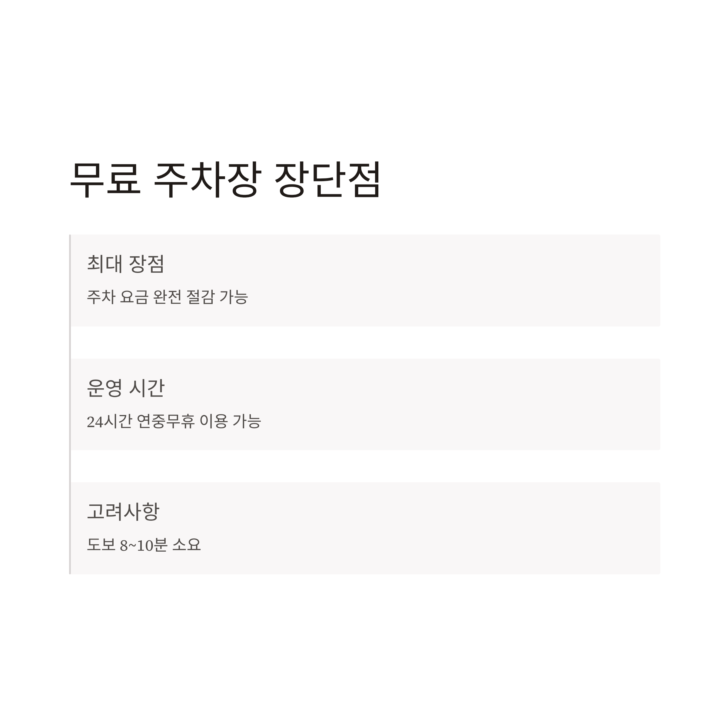 특히 장기 주차나 비용에 민감한 분들에게 매우 추천할 만한 옵션입니다.