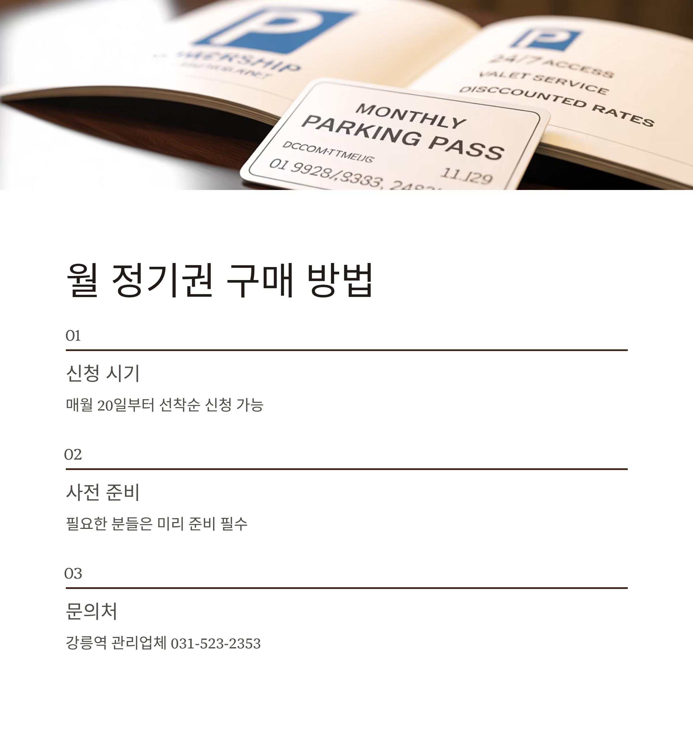 강릉역을 자주 이용하거나 장기간 주차할 예정이라면 월 정기권을 고려해볼 가치가 있습니다.