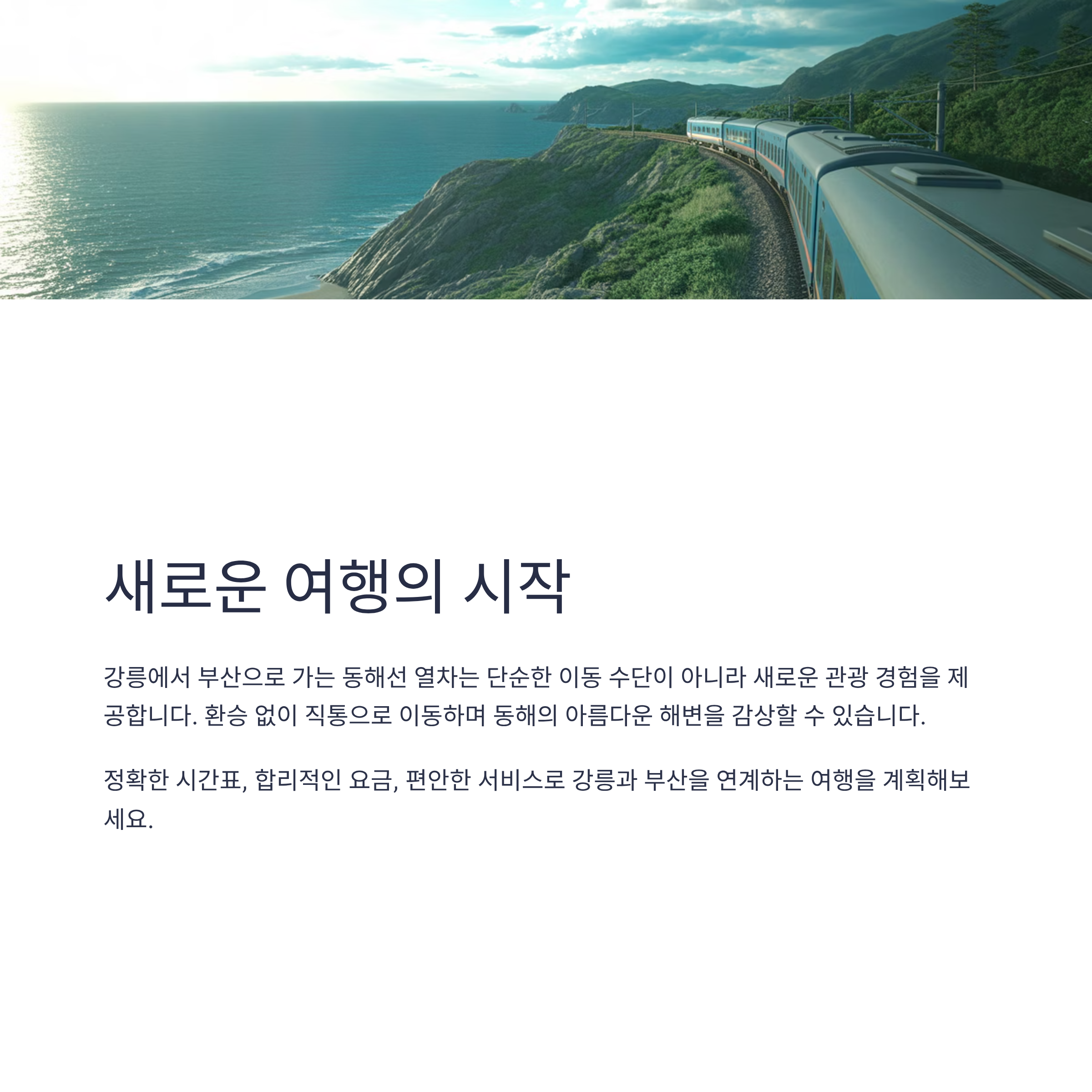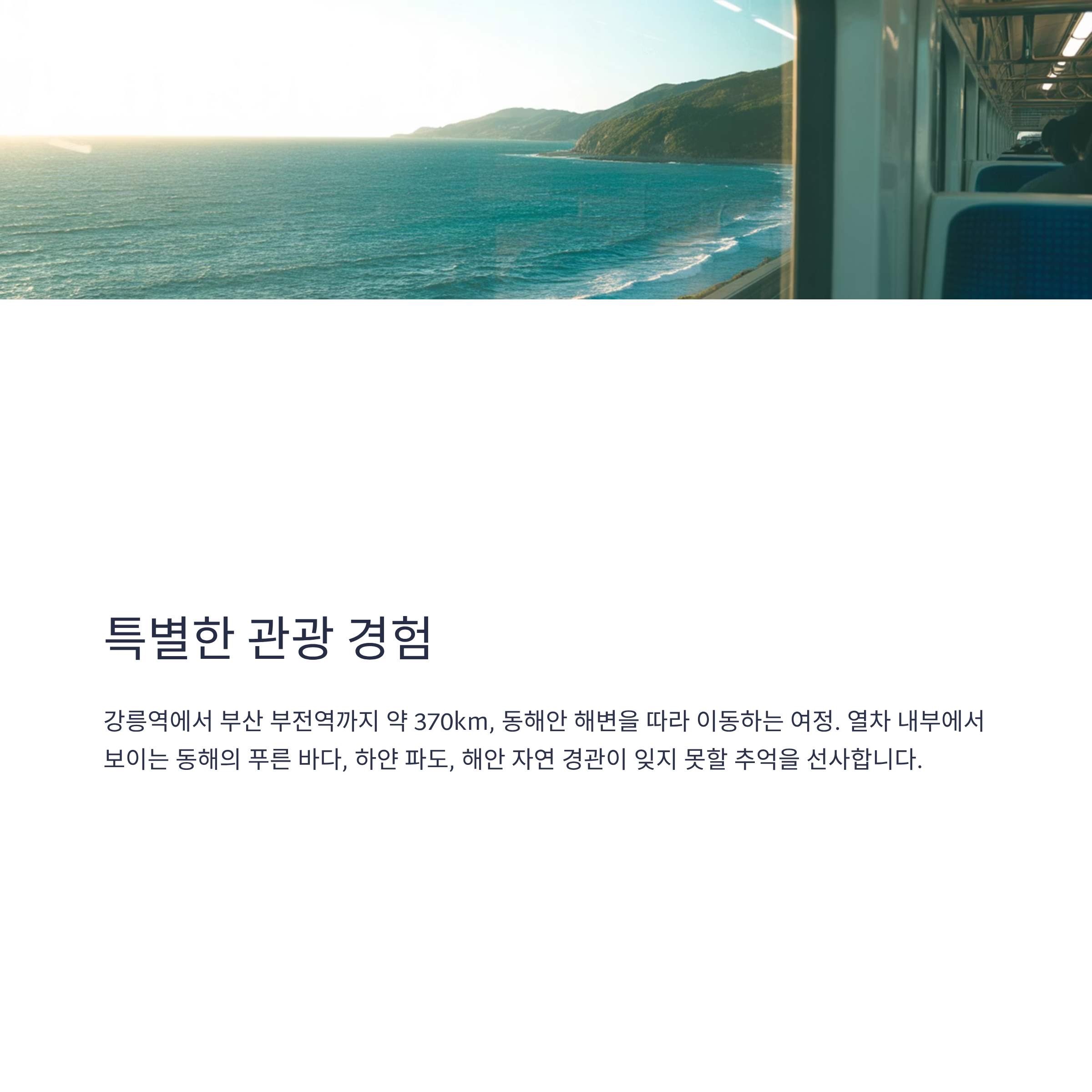 강릉과 부산, 두 도시의 매력을 한 번에 경험할 수 있는 동해선 여행을 시작하세요.