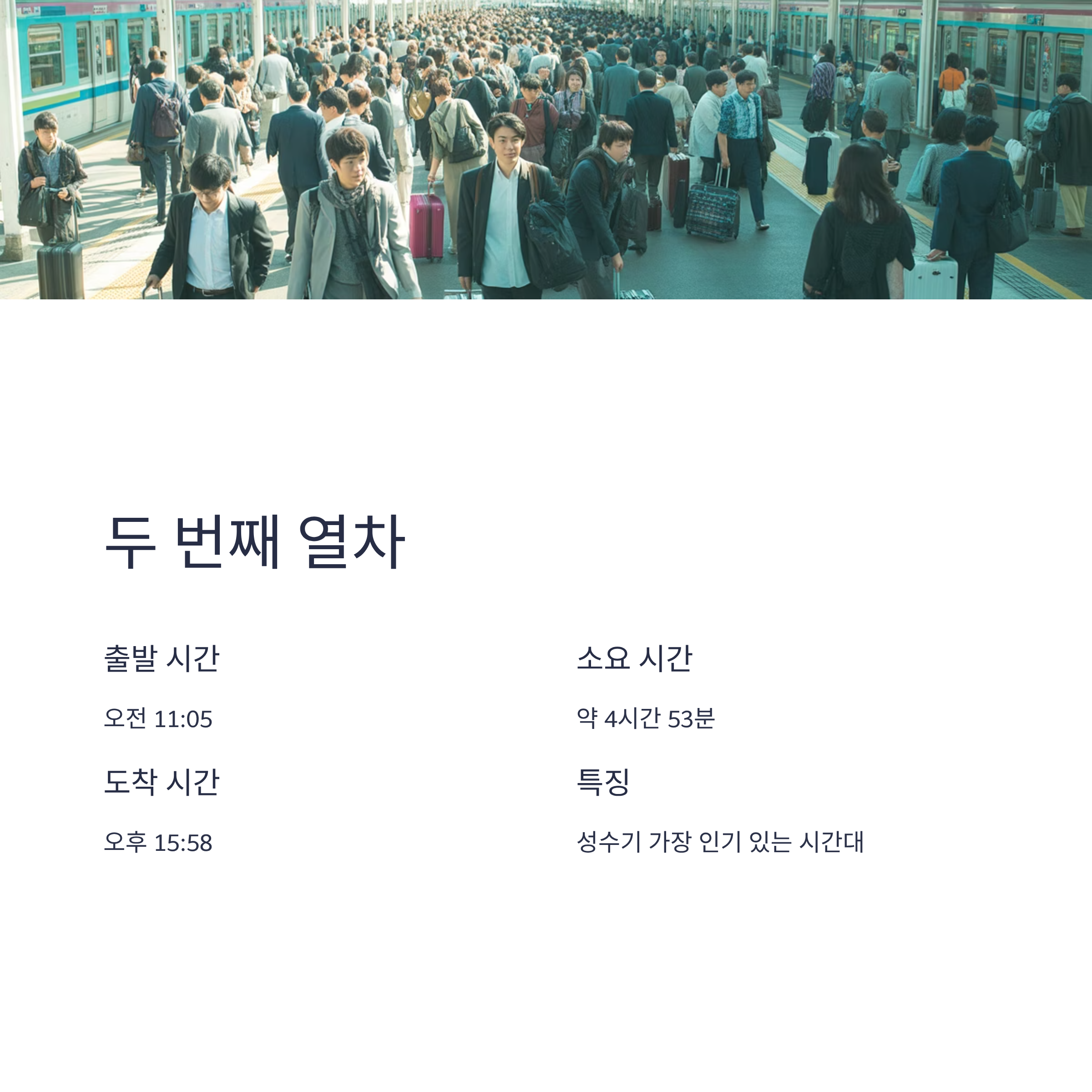 이 시간대의 열차는 성수기에 가장 인기가 많으므로 미리 예매하는 것이 좋습니다.