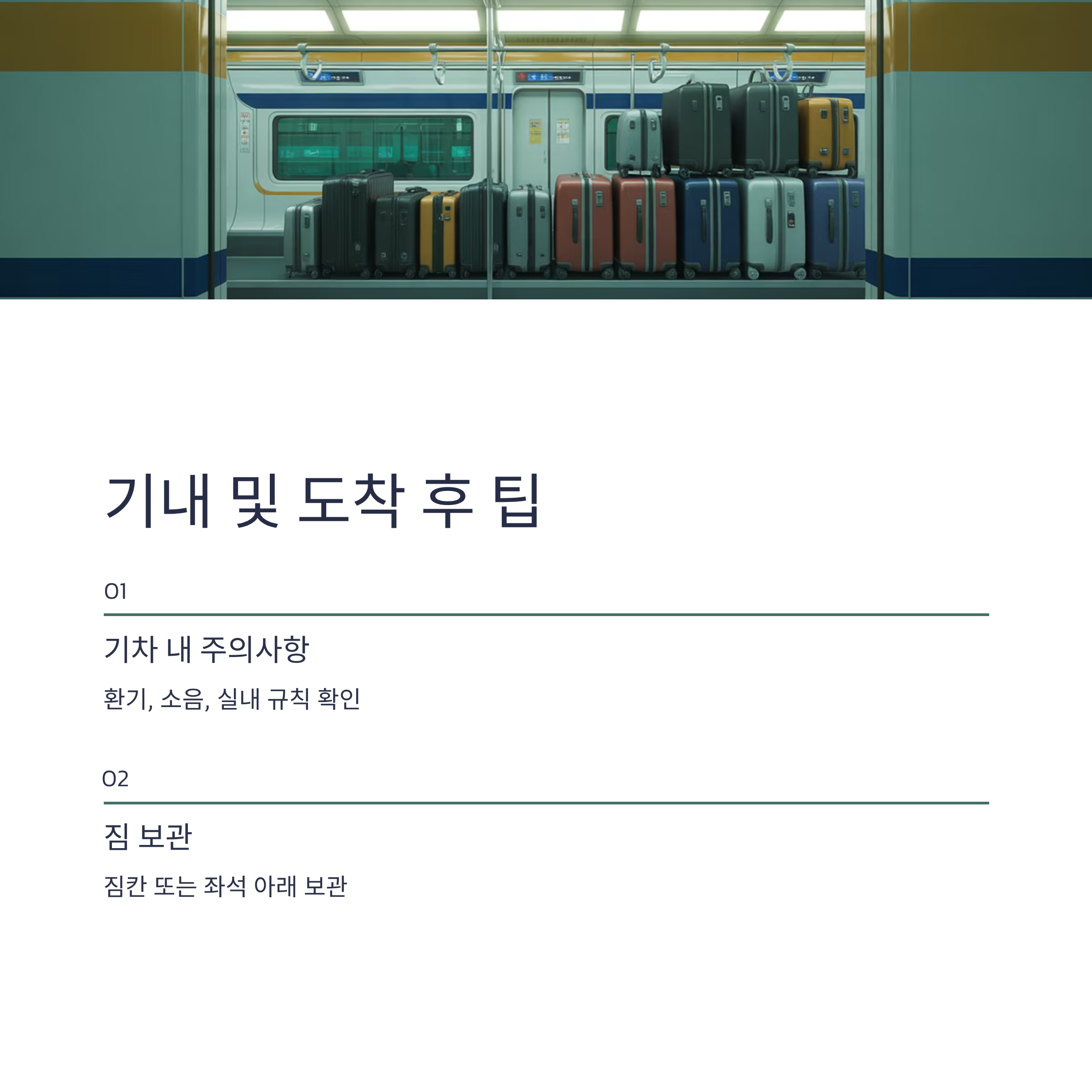 셋째, 도중 정차역에서 내리는 경우를 제외하고는 기차 내에서의 주의사항을 확인하세요.