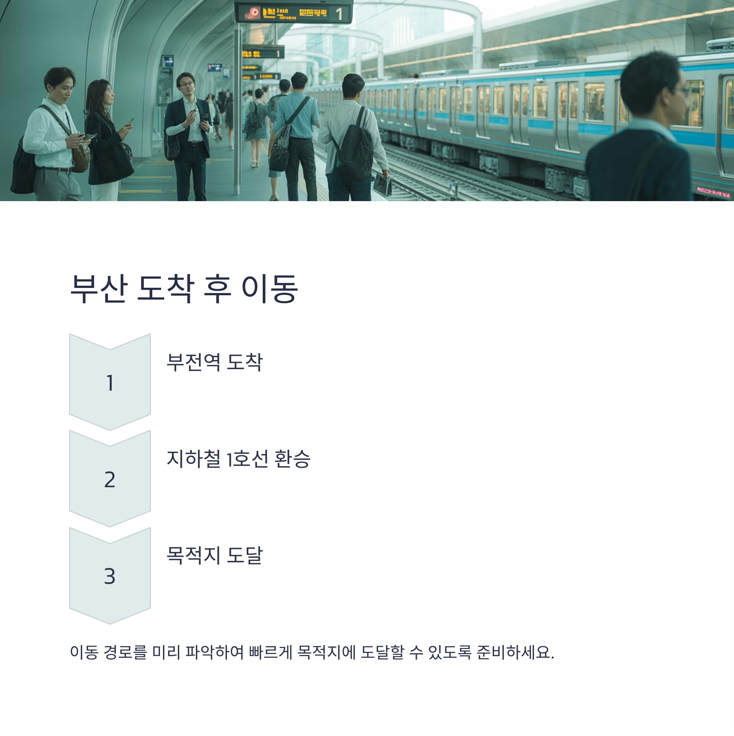 다섯째, 부산 부전역 도착 후 이동 경로를 미리 파악하여 빠르게 목적지에 도달할 수 있도록 준비하세요.
