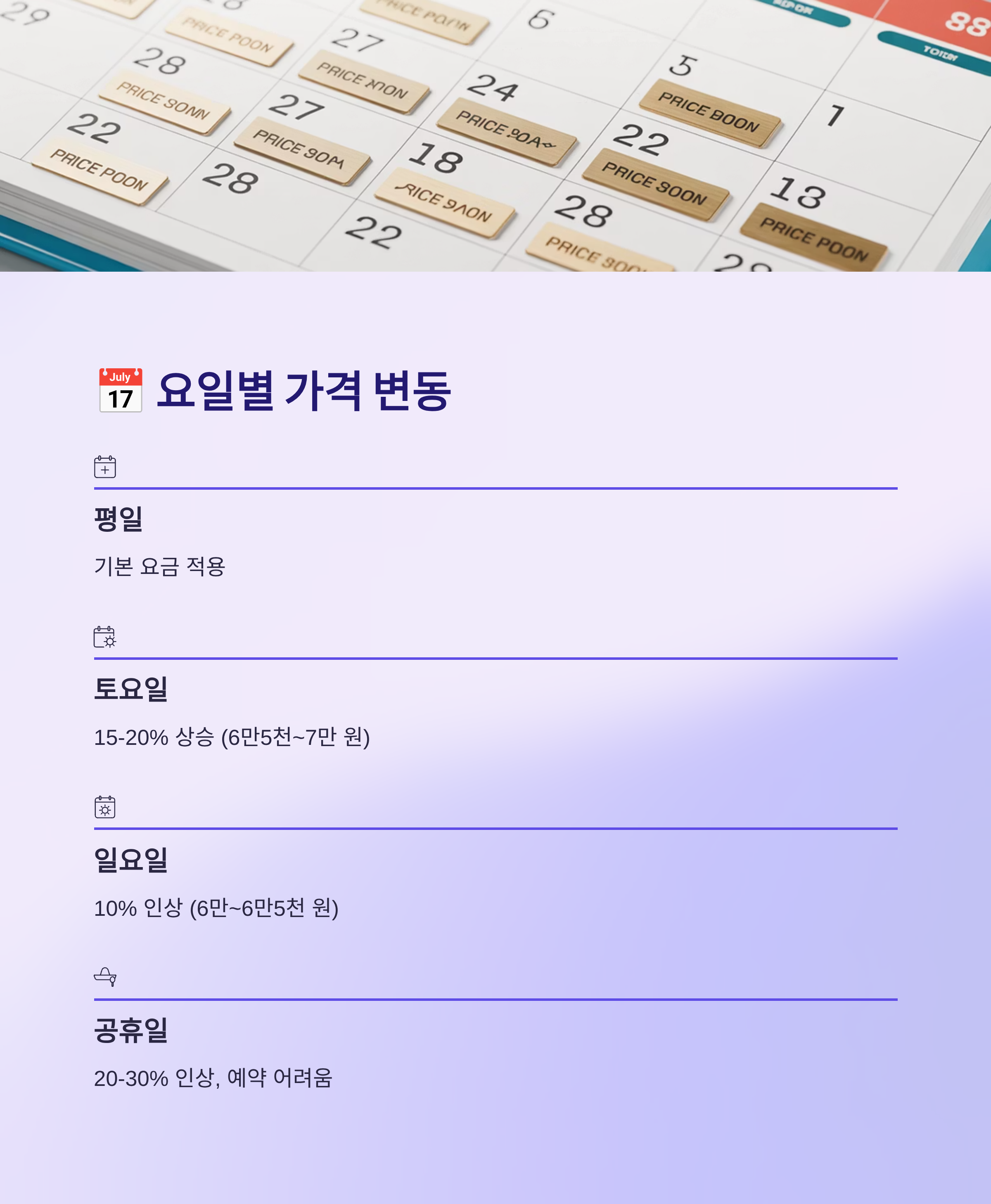 📅 평일 vs 주말 vs 연휴, 시즌별 가격 변동 패턴의 이해