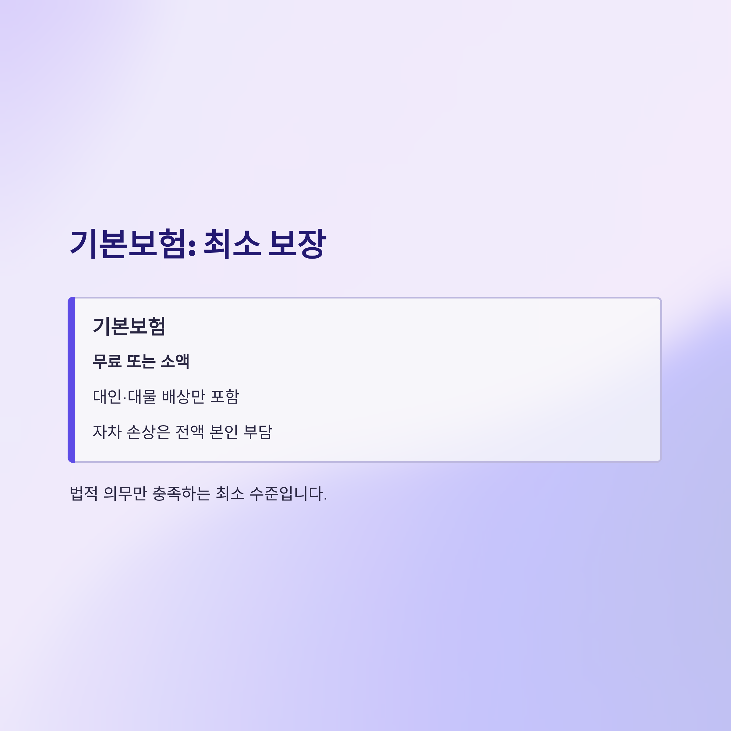 기본보험은 무료 또는 소액으로 대인, 대물 배상만 포함하며, 자차 손상은 운전자가 전액 부담합니다.