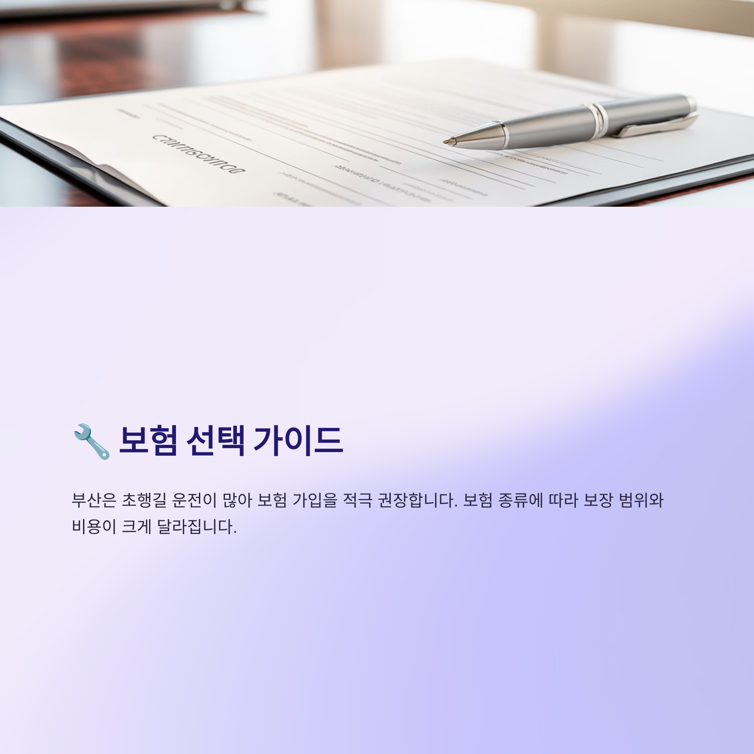 렌트카 보험은 대부분 선택사항이지만, 부산은 초행길 운전이 많은 지역이라 보험 가입을 적극 권장합니다.