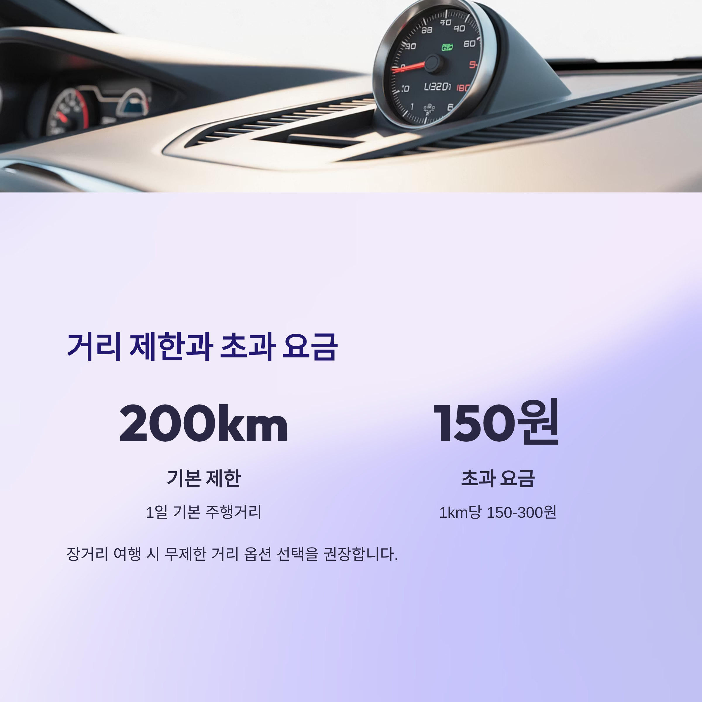 주행거리 초과는 1km당 150~300원으로 계산되며, 기본적으로 200~250km가 제한되어 있습니다.