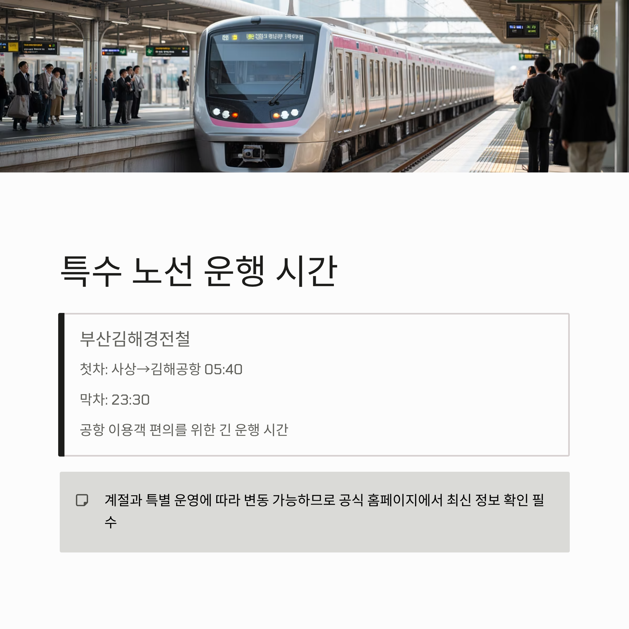 정확한 시간표 정보와 현명한 이동 전략으로 부산 생활을 한 단계 업그레이드하시기 바랍니다.