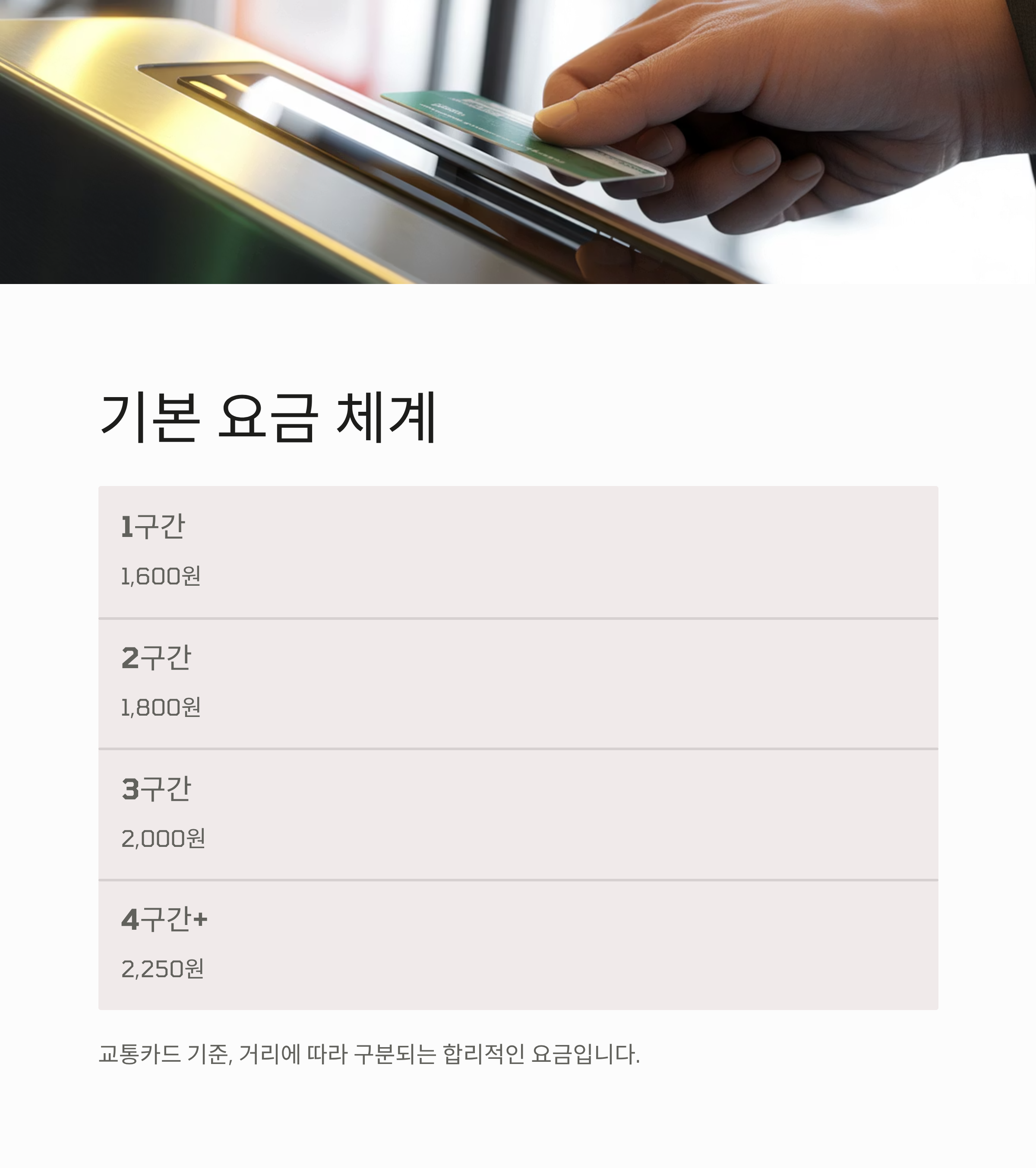 3구간은 2,000원, 4구간 이상은 2,250원으로 거리에 따라 구분됩니다.