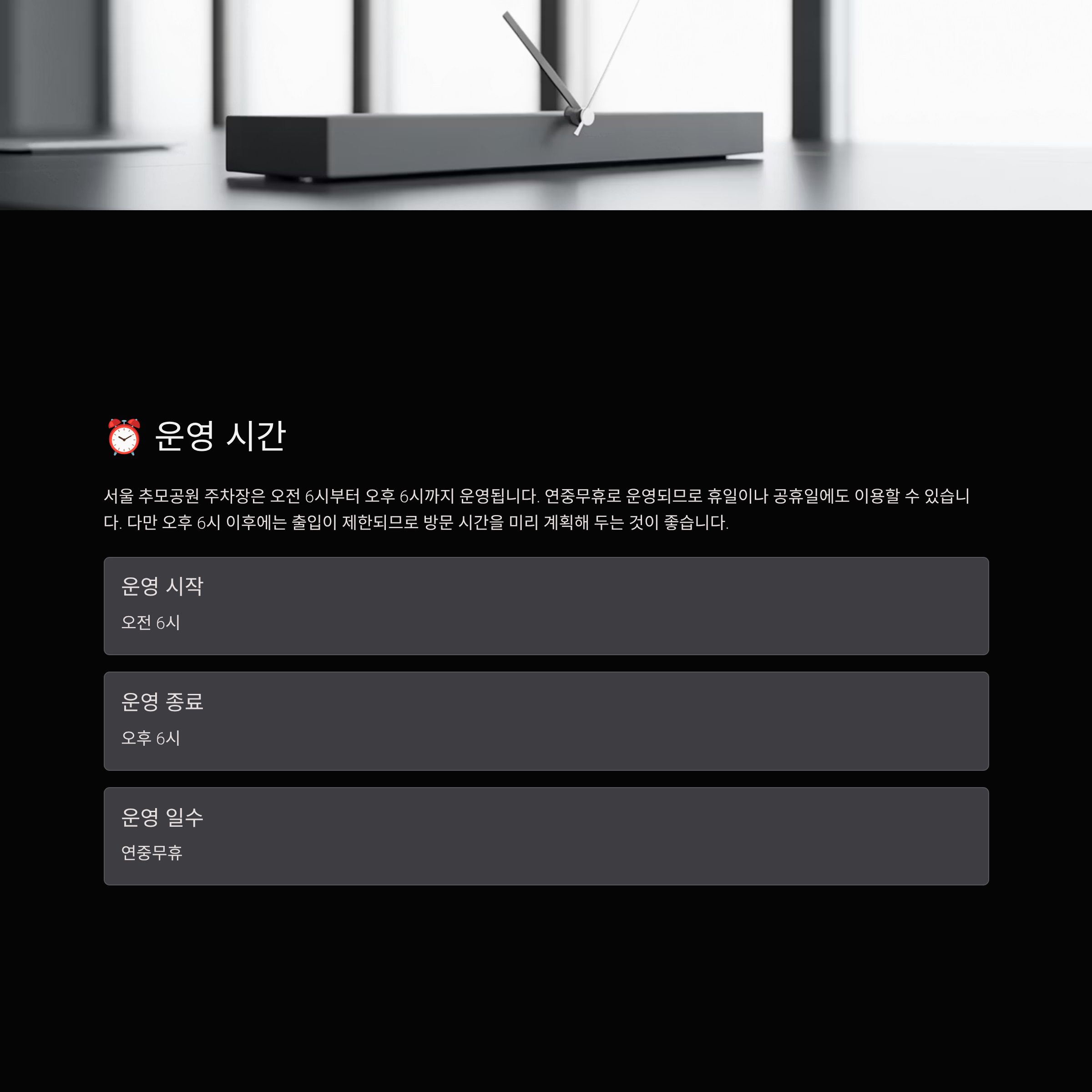4️⃣ ⏰ 주차장 운영 시간 및 접근성