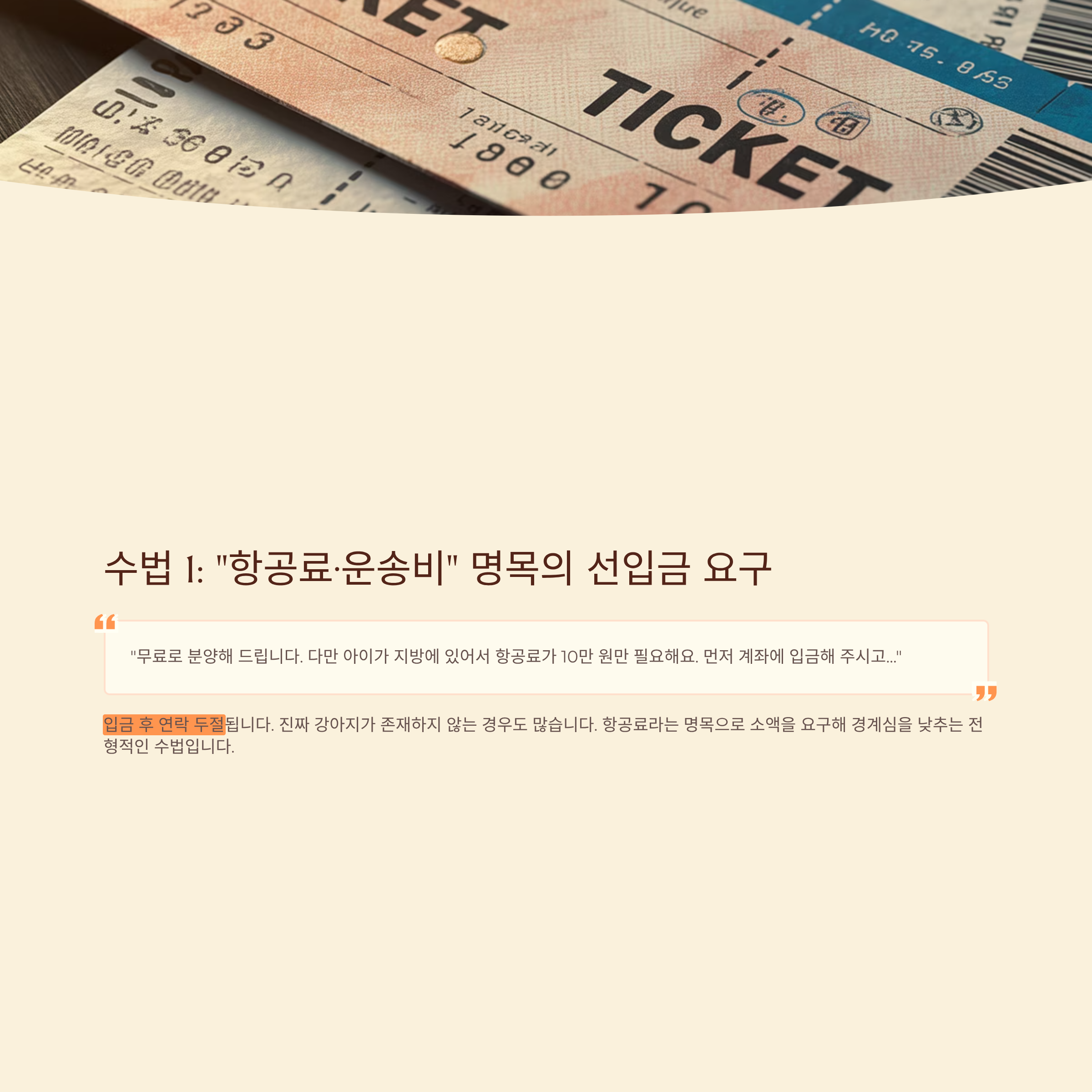 **수법 1: "항공료·운송비" 명목의 선입금 요구**