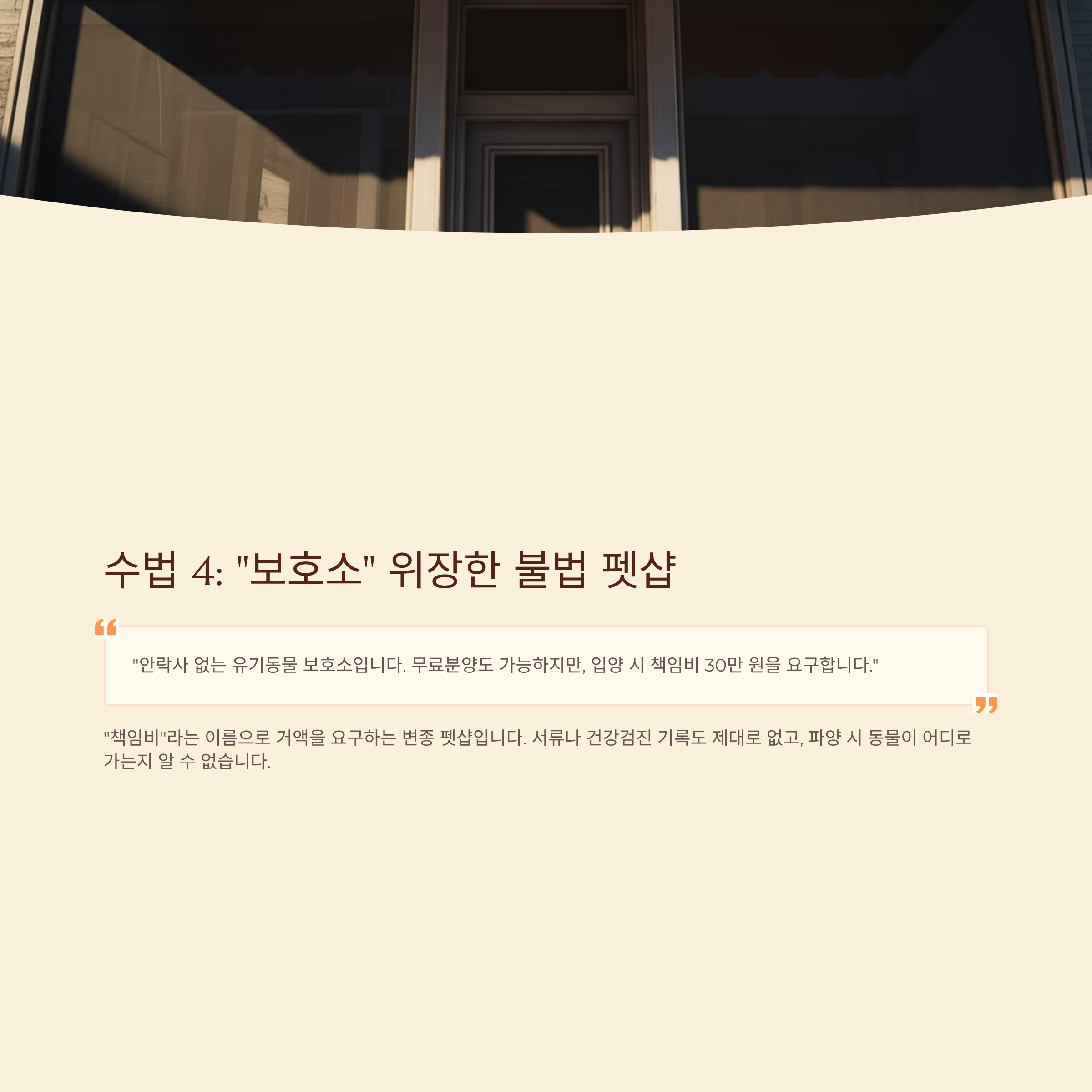 **수법 4: "보호소" 위장한 불법 펫샵**