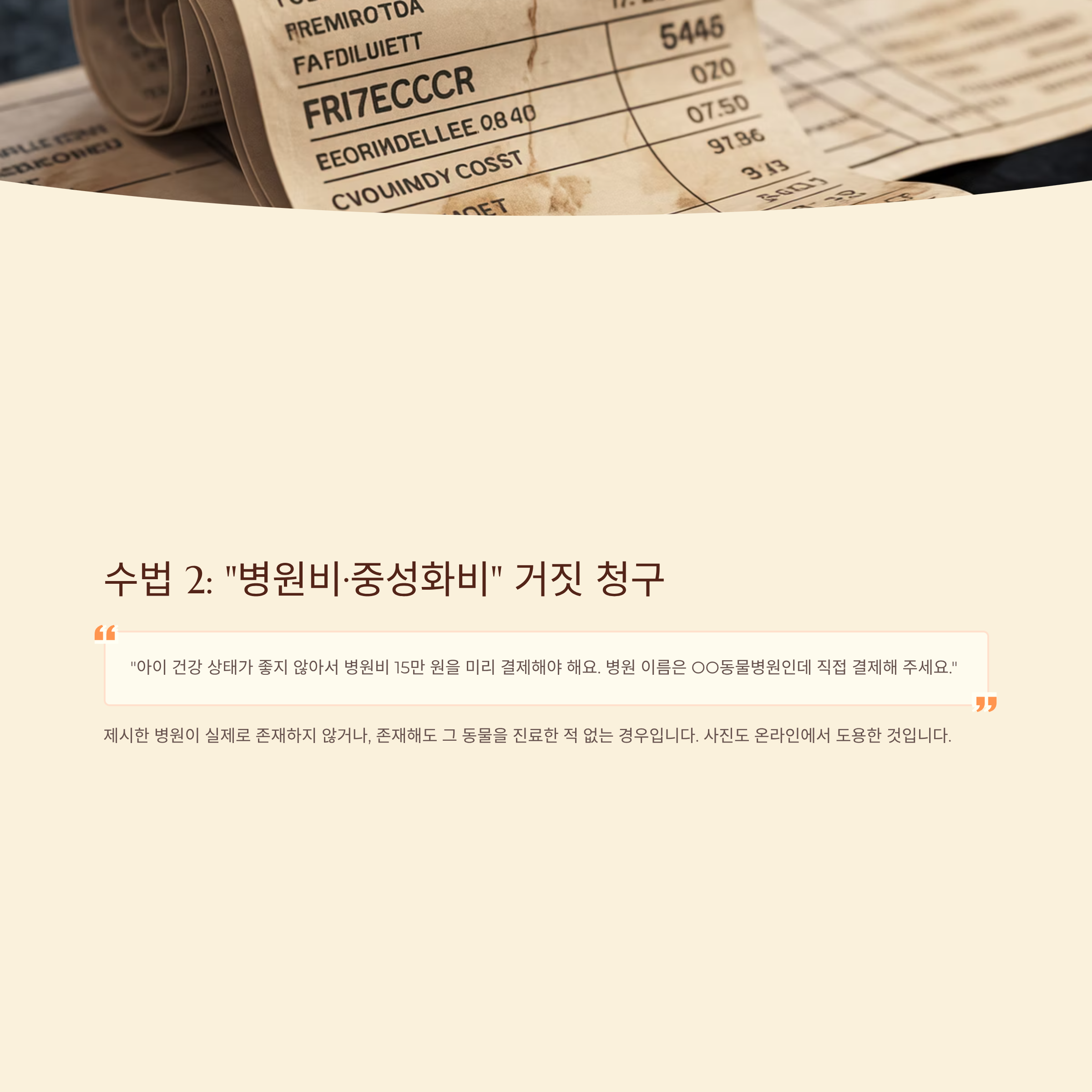 **수법 2: "병원비·중성화비" 거짓 청구**