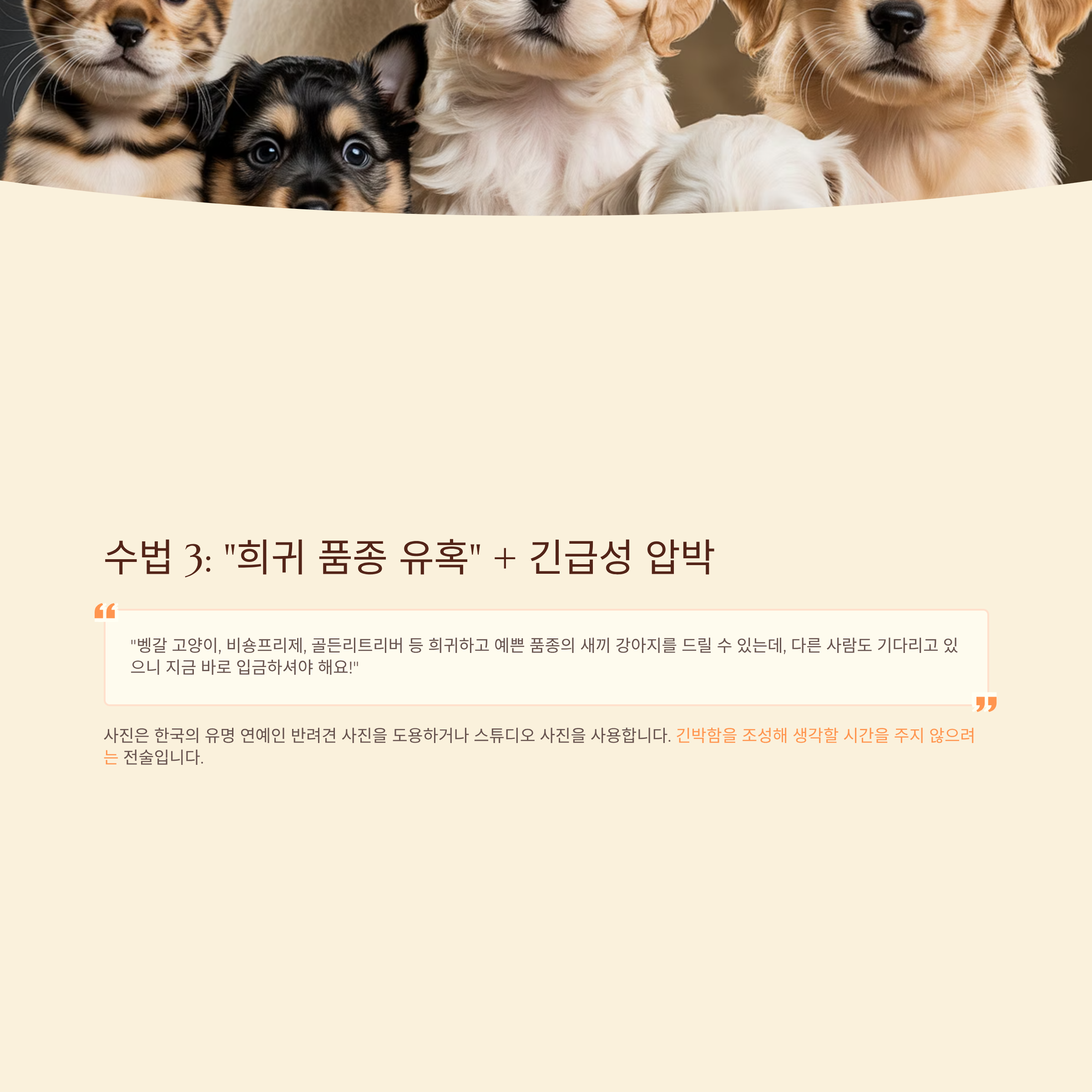 **수법 3: "희귀 품종 유혹" + 긴급성 압박**