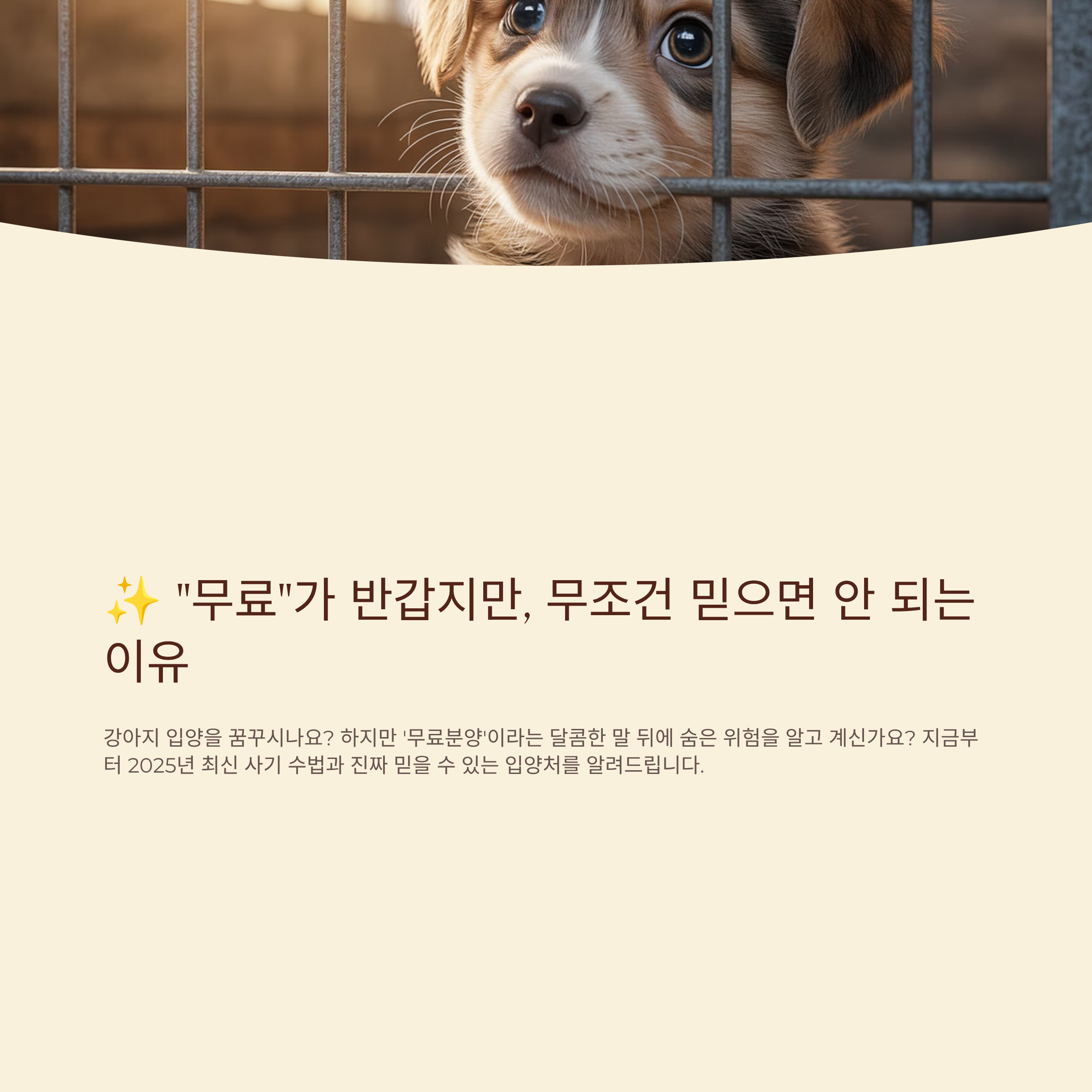 강아지 무료분양은 분명히 가능합니다. 하지만 "무료"라는 두 글자에만 집중하면 안 됩니다. 정말 중요한 건 다음 세 가지입니다.