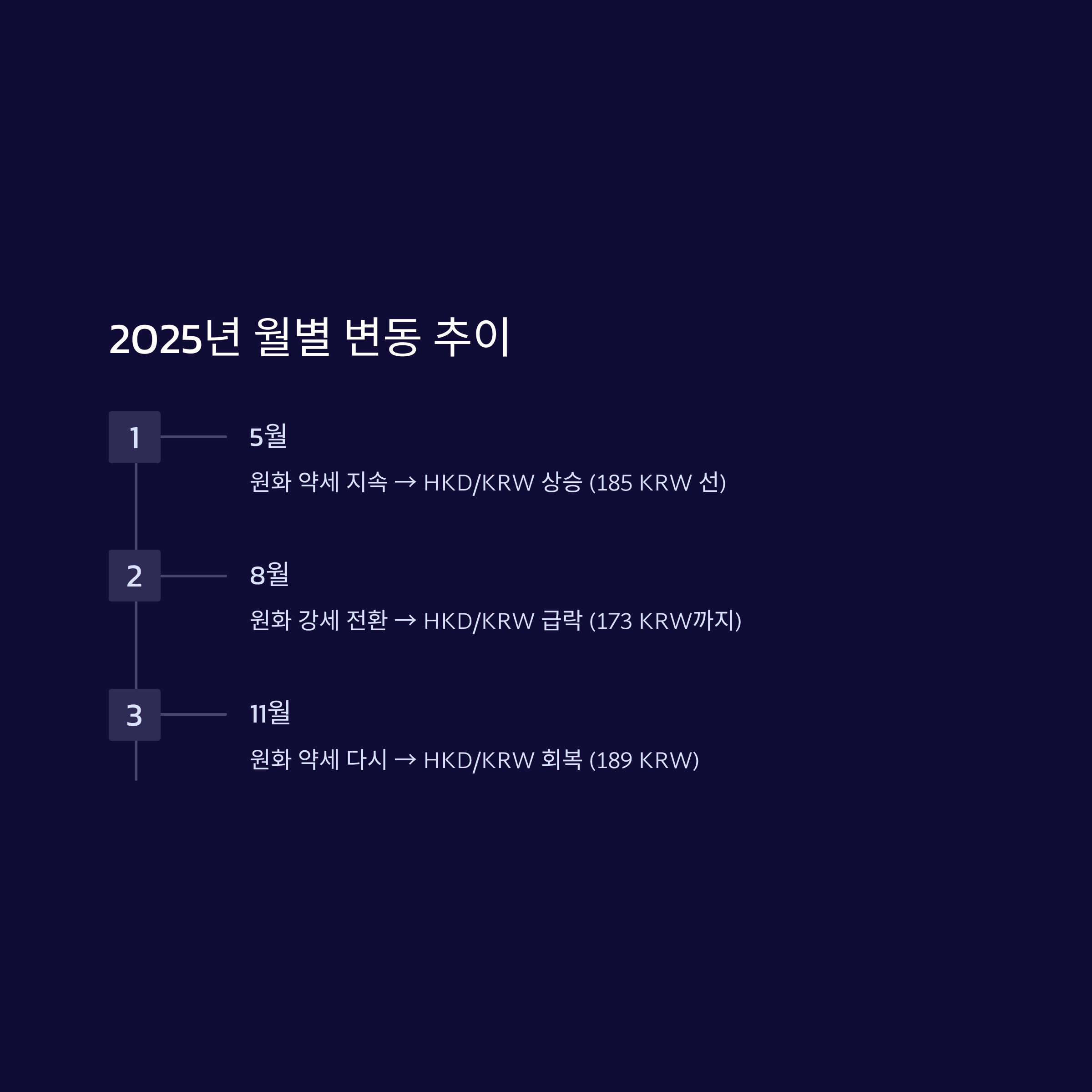 - 11월: 원화 약세 다시 → HKD/KRW 회복 (189 KRW)