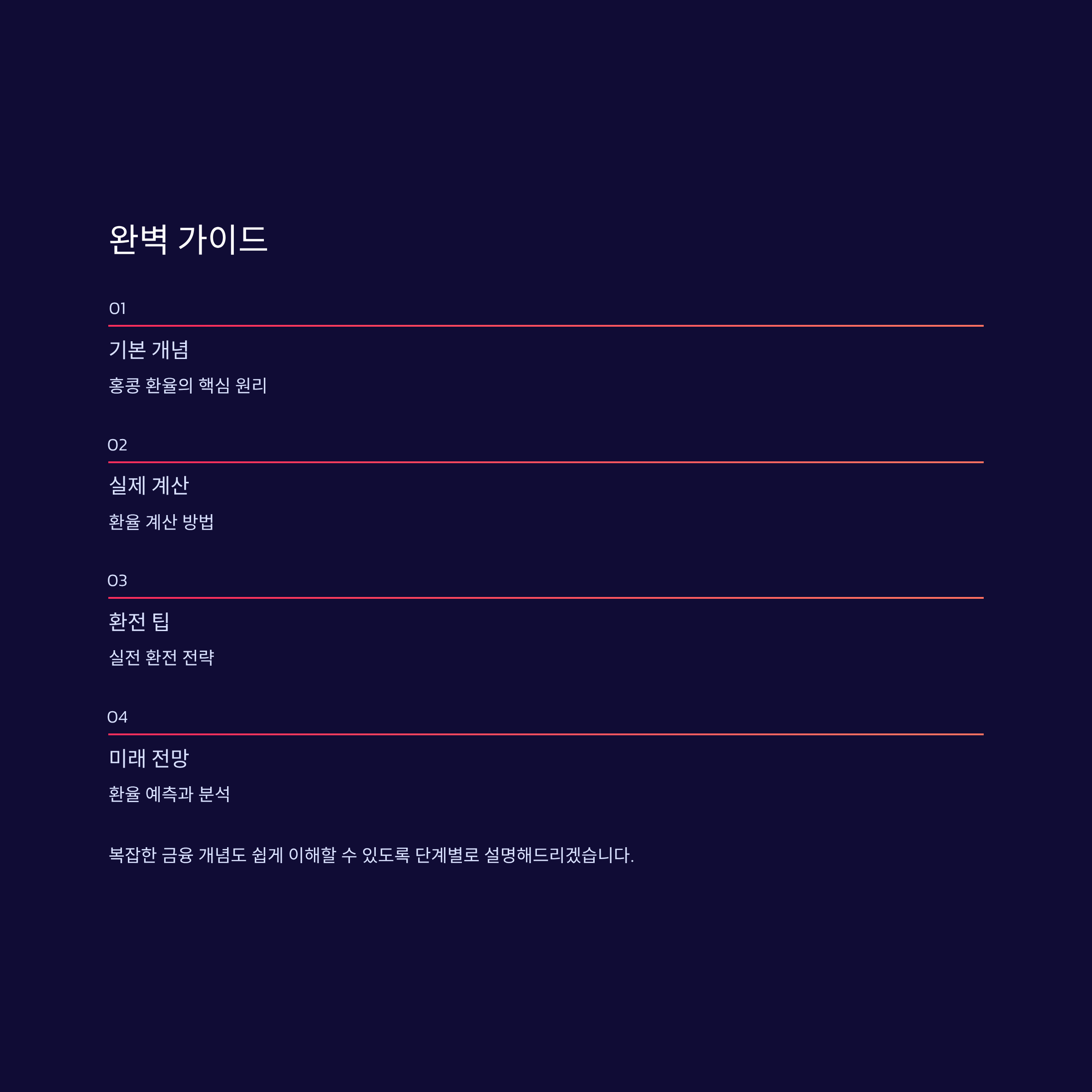 이 글에서는 홍콩 환율의 기본 개념부터 실제 계산 방법, 환전 시 팁, 그리고 앞으로의 환율 전망까지 모든 것을 실용적으로 정리했습니다.