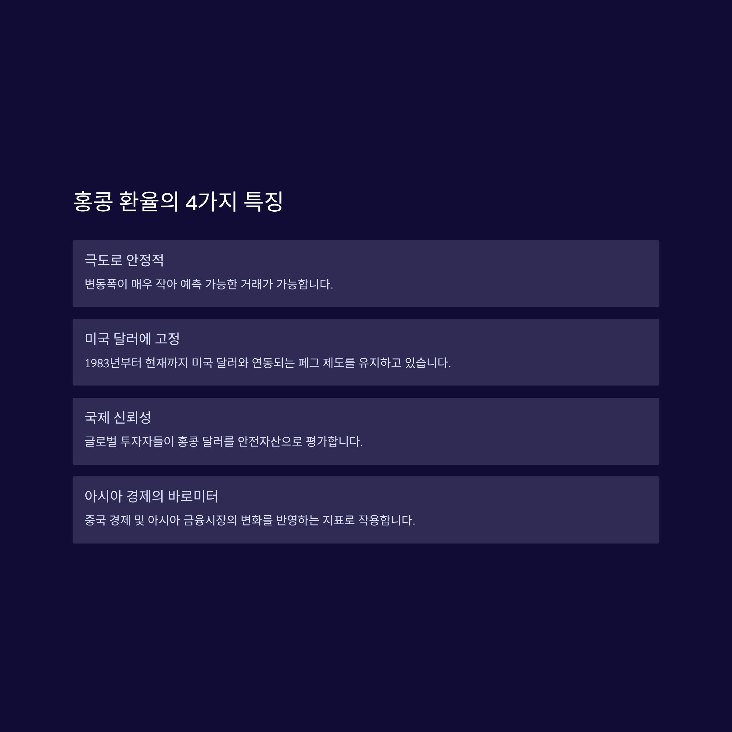 3) 국제 신뢰성: 글로벌 투자자들이 홍콩 달러를 안전자산으로 평가합니다.