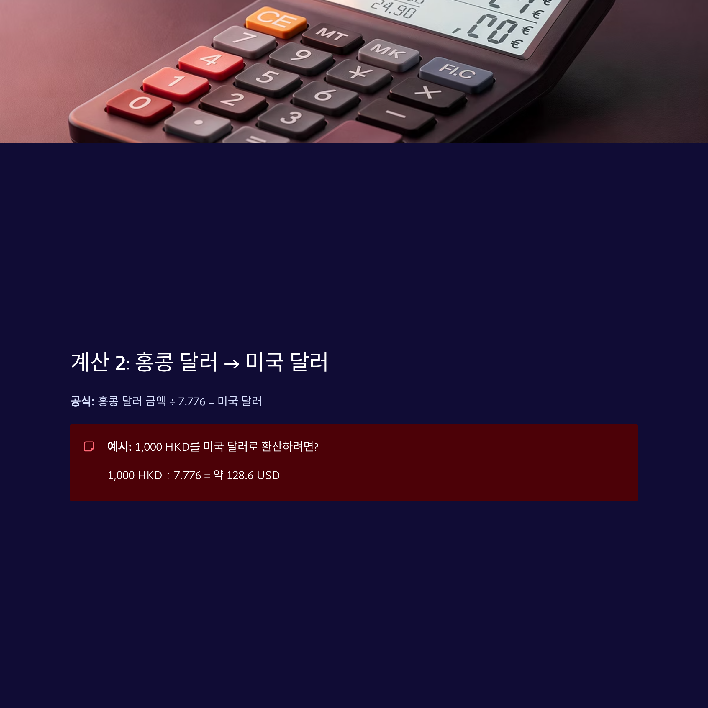홍콩 달러 환율 계산은 간단한 곱셈과 나눗셈만으로도 충분합니다.