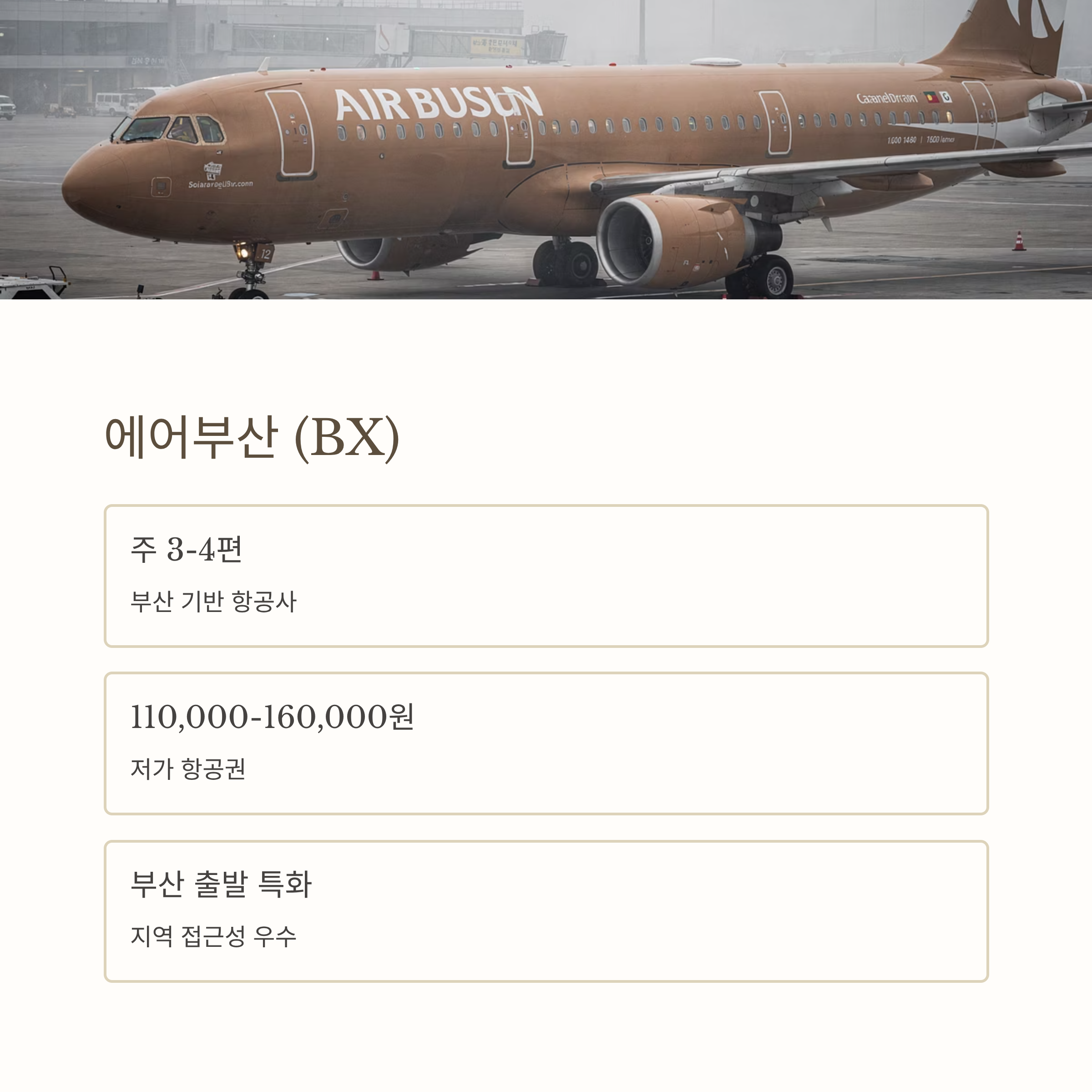 - 특징: 부산 기반 항공사로 부산 출발 편이 많음
