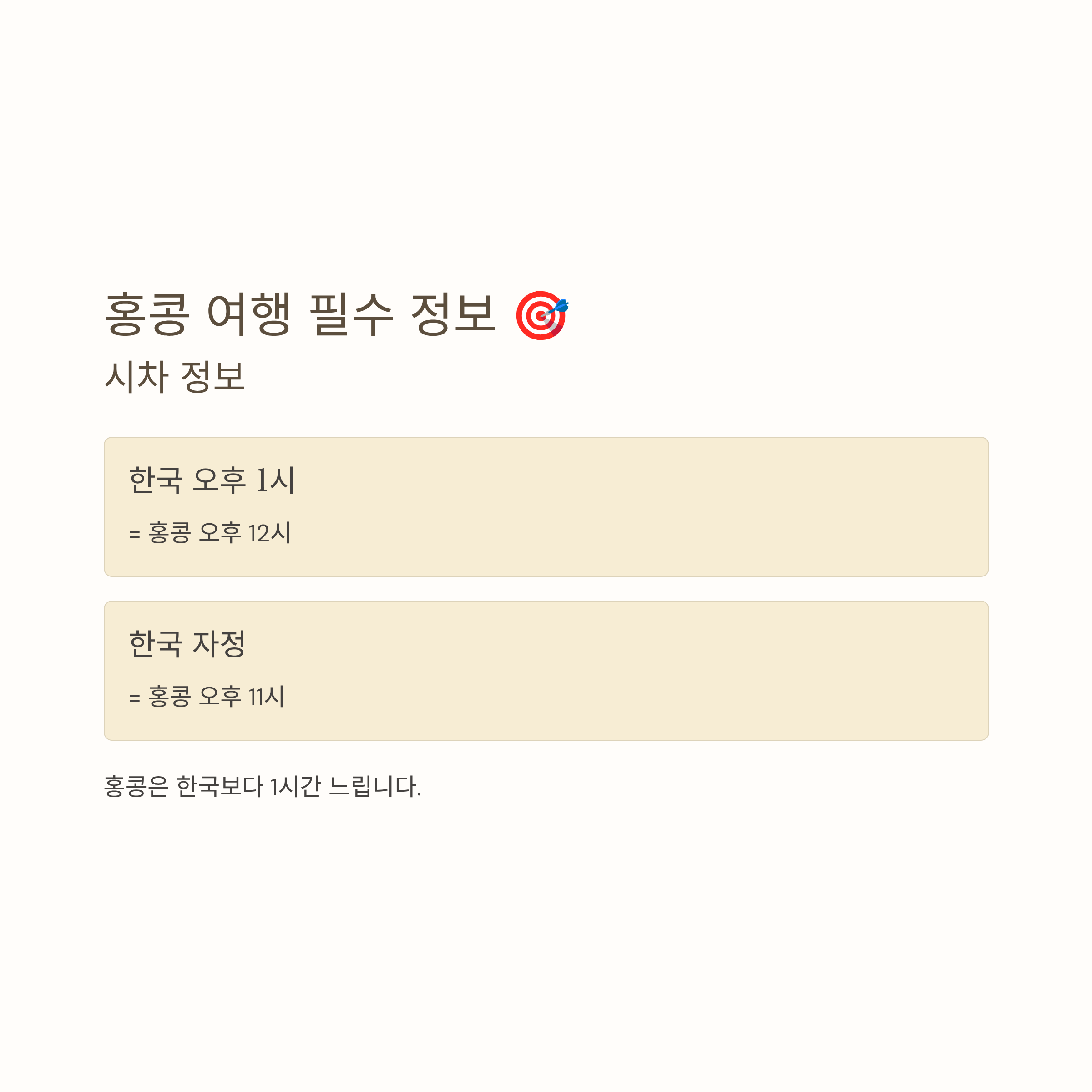 - 한국 오후 1시 = 홍콩 오후 12시