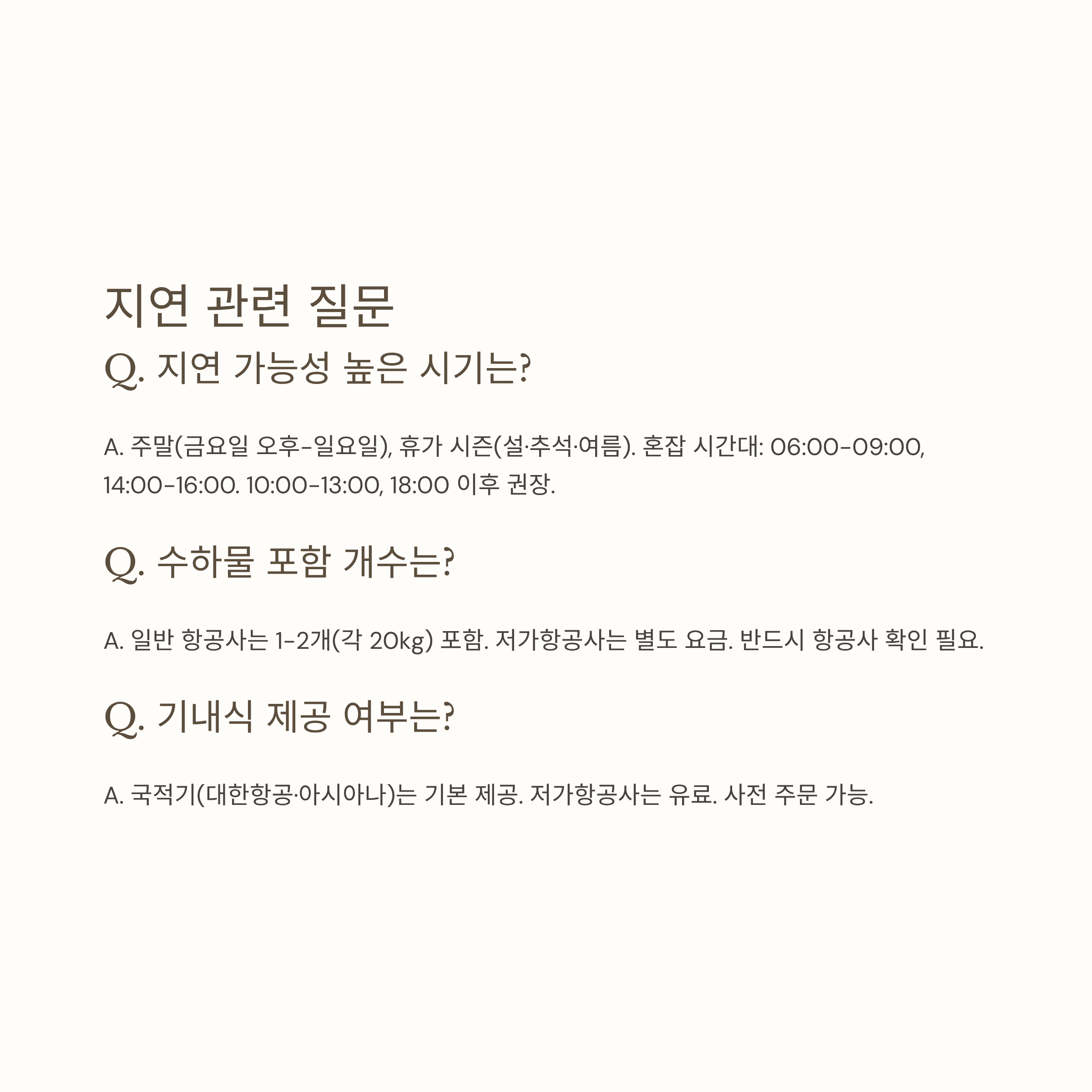 Q. 비행기가 지연될 가능성이 높은 시기나 시간대가 있나요?