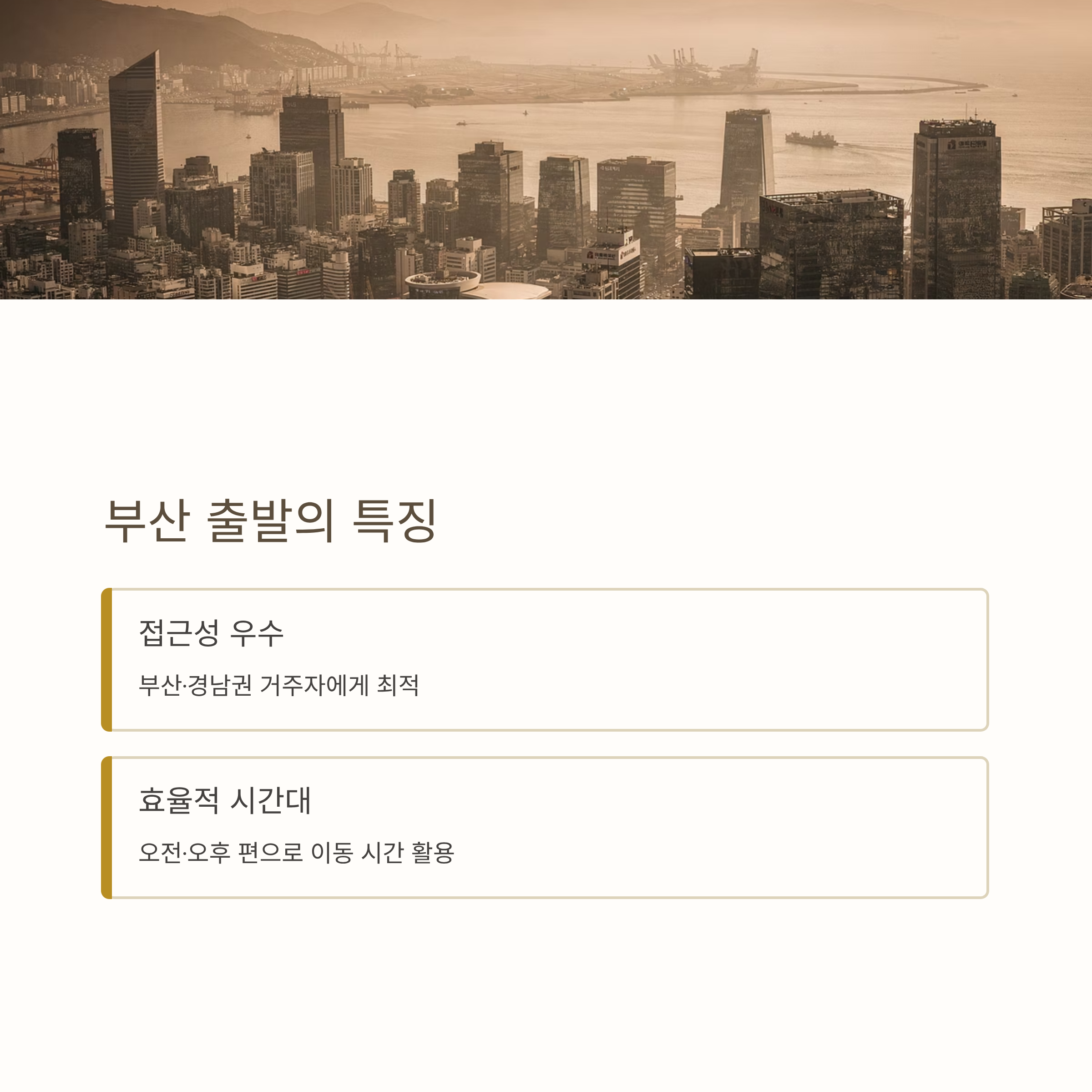 부산 출발의 특징: