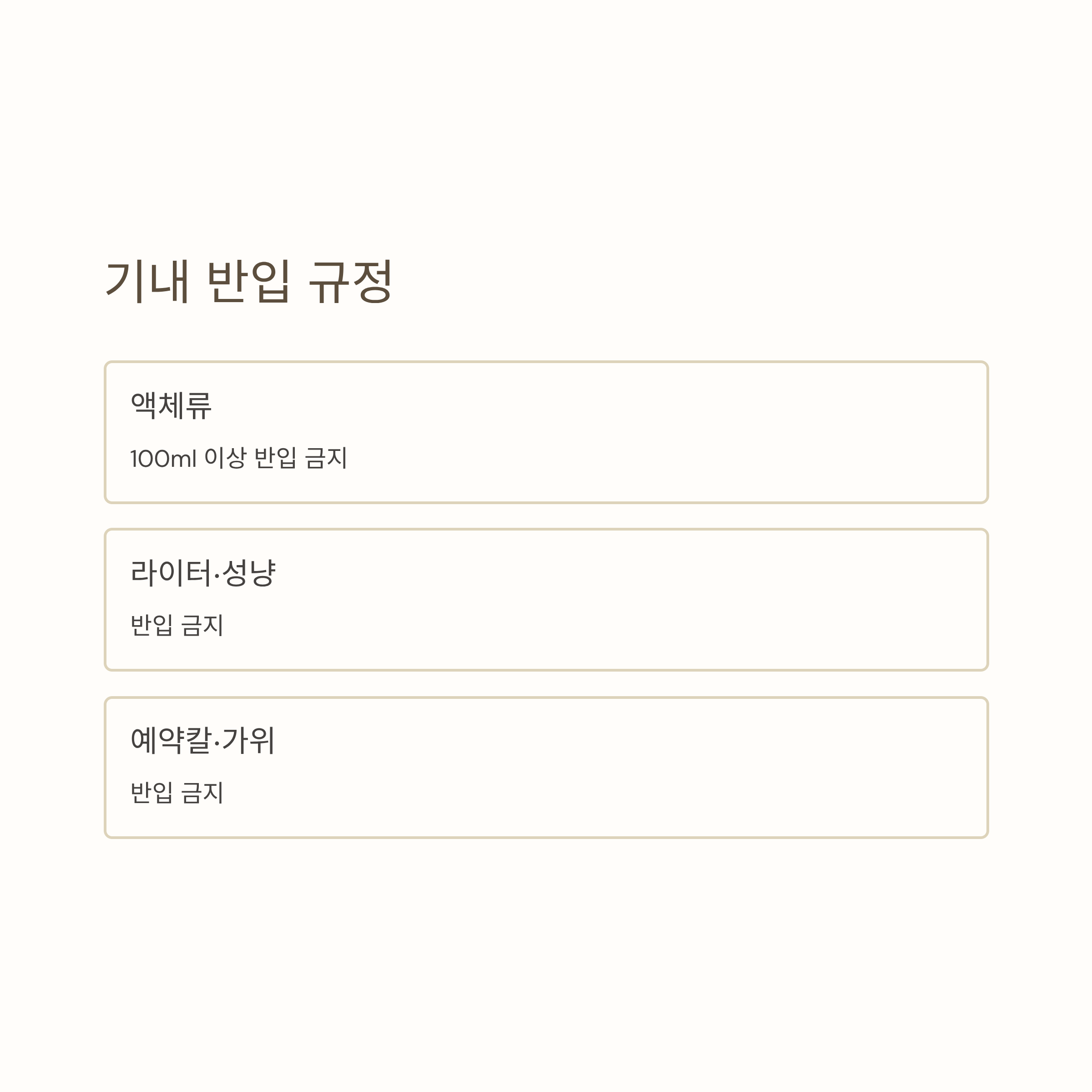 - 액체류: 100ml 이상 반입 금지