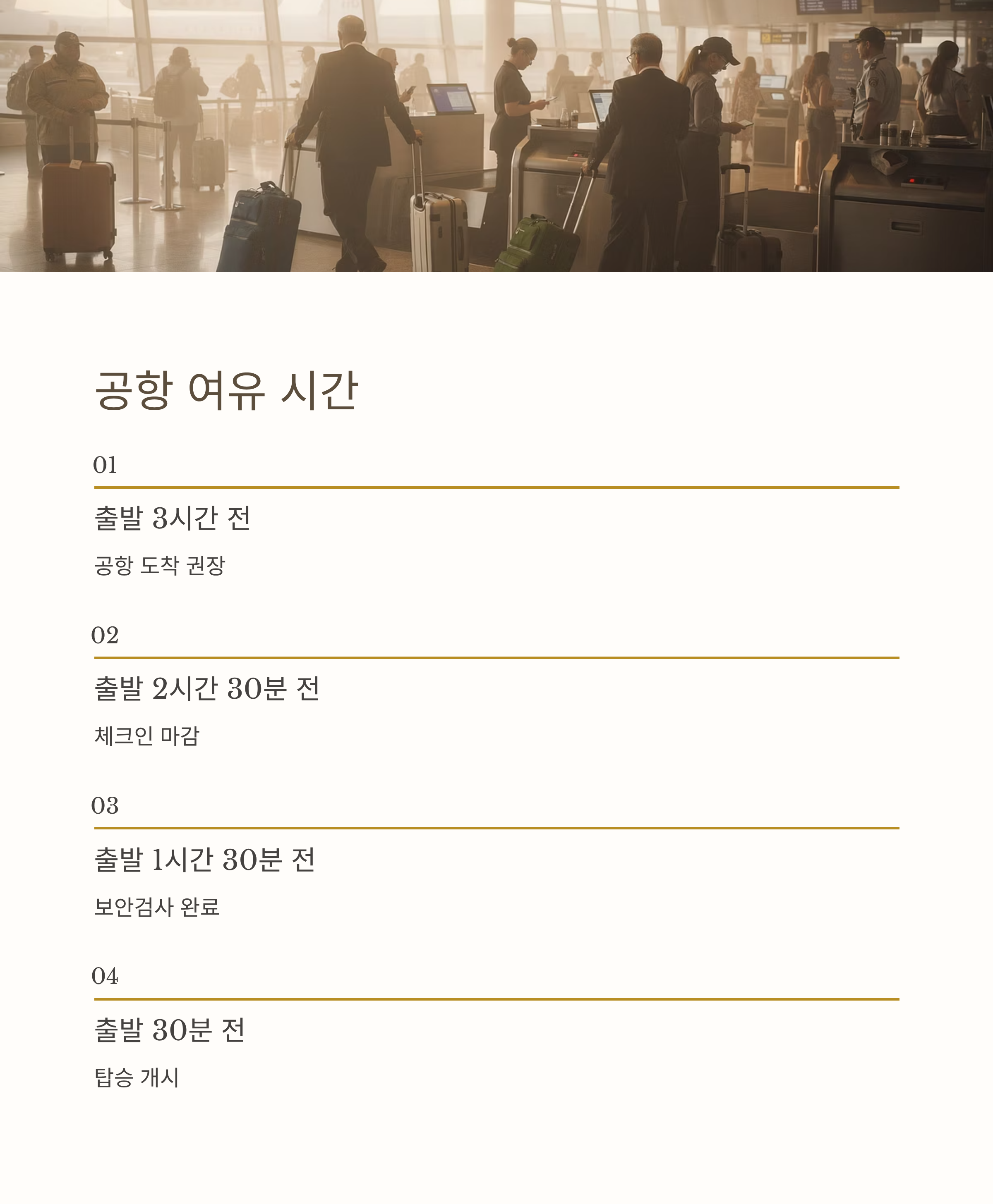 국제선 항공편의 경우 출발 시간 최소 3시간 전 공항 도착을 권장합니다.