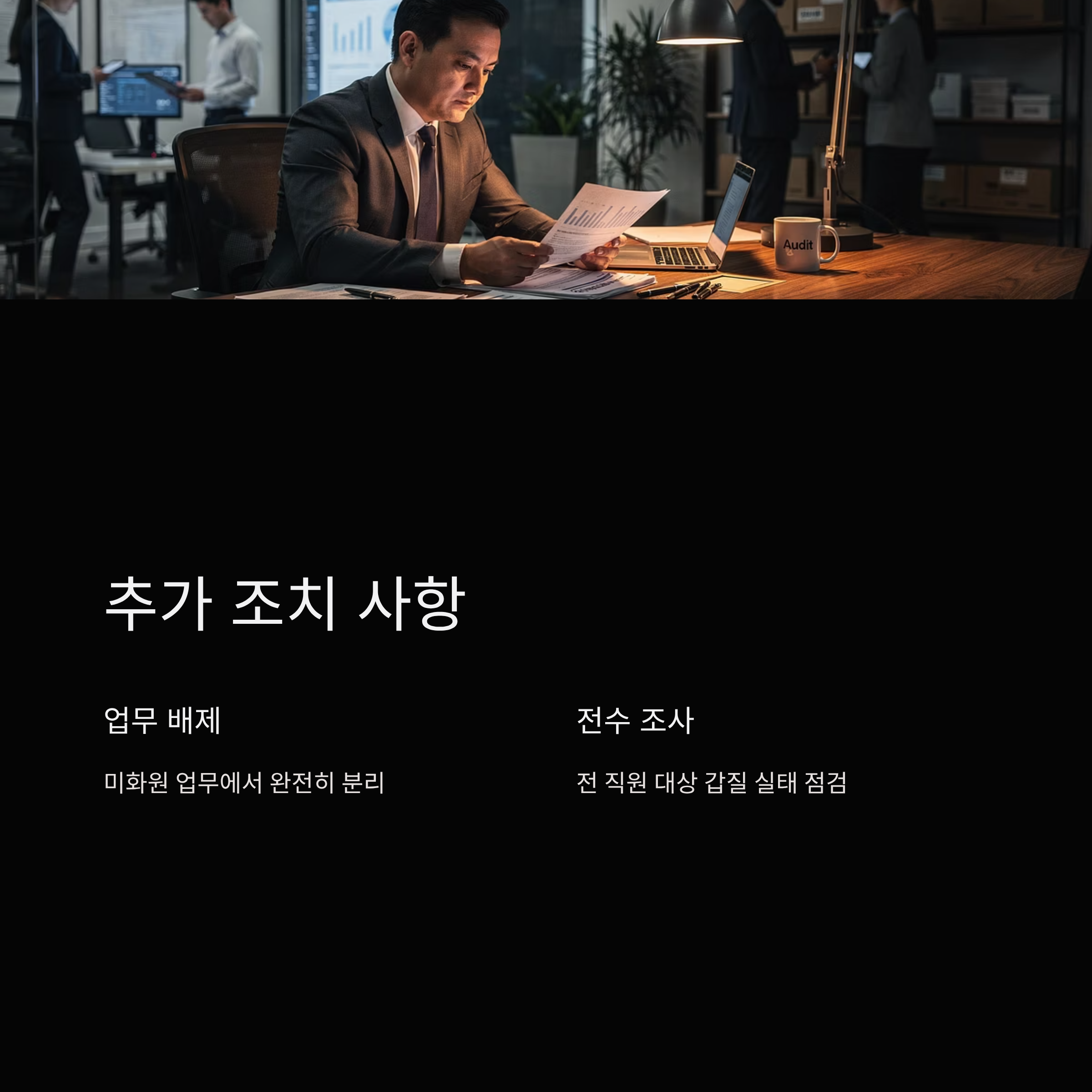 또한 미화원 업무에서 완전히 배제하고 전 직원을 대상으로 갑질 실태 전수 조사에 착수했습니다.