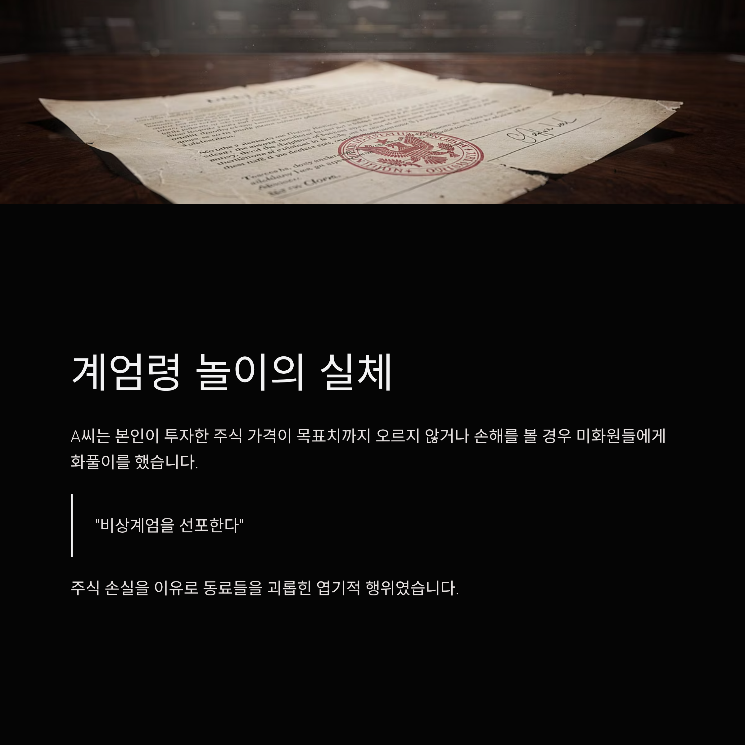 🩸 충격 실태 1: 주가 떨어지면 '인간 제물' 바치는 계엄령 놀이