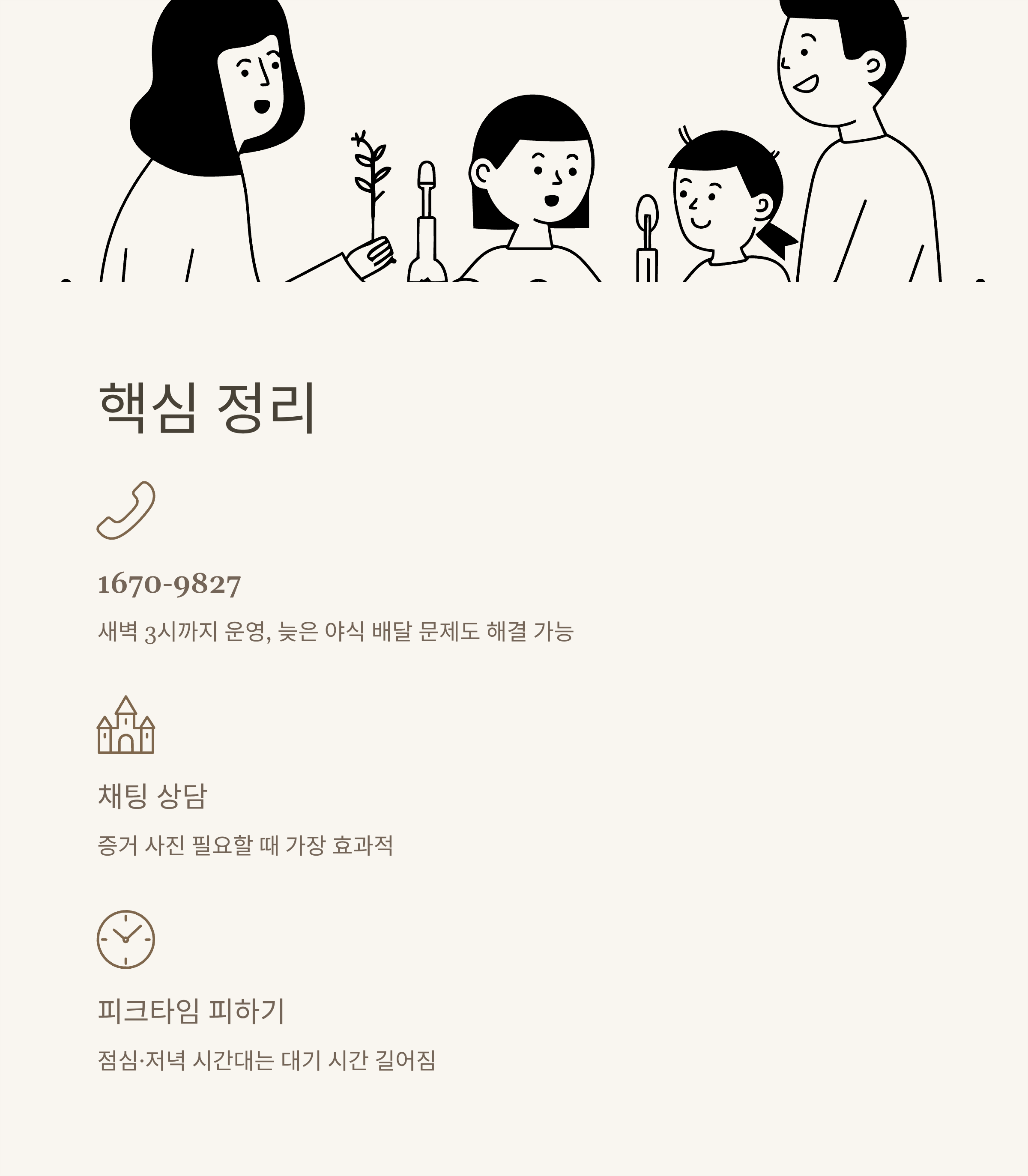 미리 번호를 저장해 두시고, 즐거운 식사 시간에 문제가 생겼을 때 당황하지 말고 활용해 보세요!