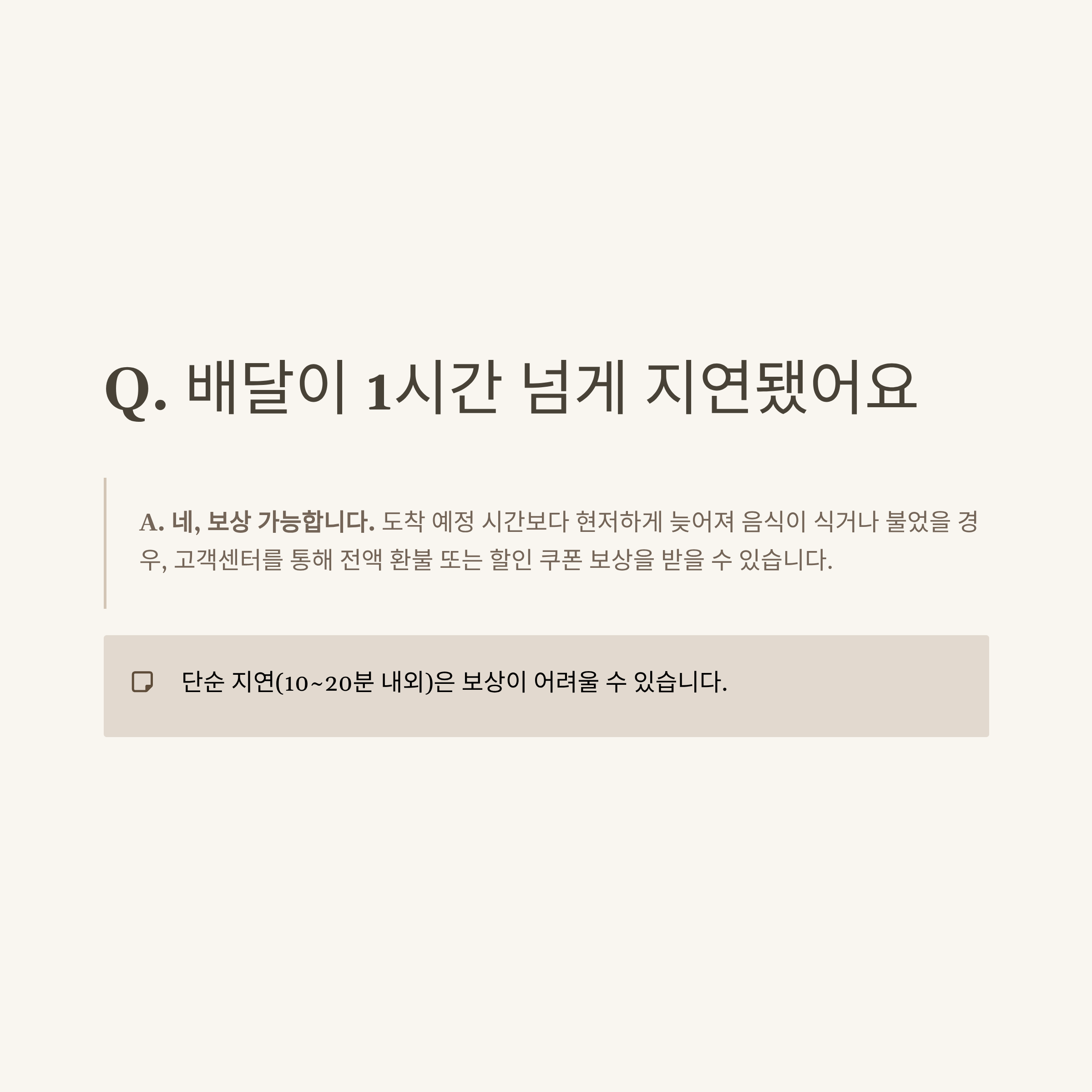 Q. 배달이 1시간 넘게 지연됐는데 보상받을 수 있나요?