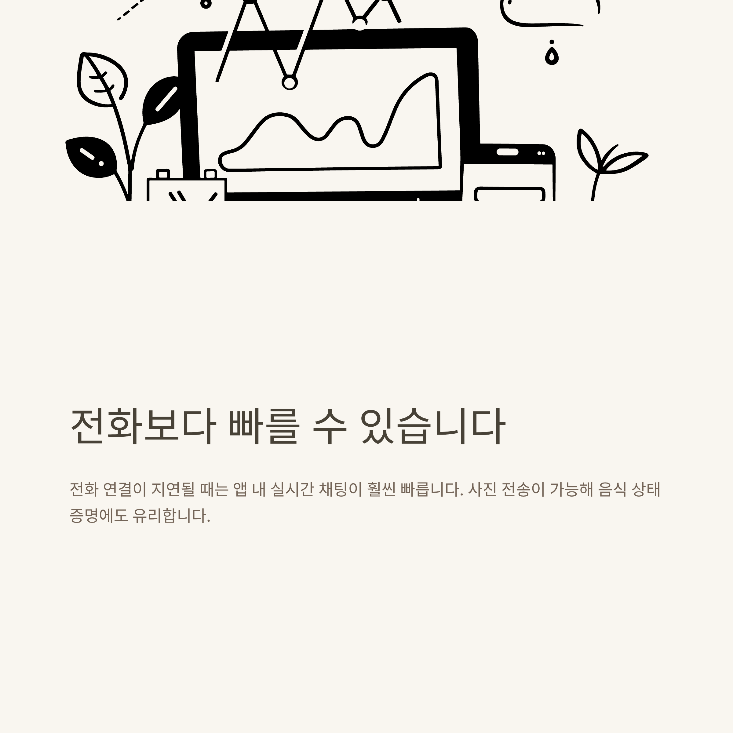 전화 연결이 너무 지연될 때는 앱 내 실시간 채팅 상담이 훨씬 빠를 수 있습니다. 사진 전송이 가능해 '음식 상태'를 증명하기에도 유리합니다.