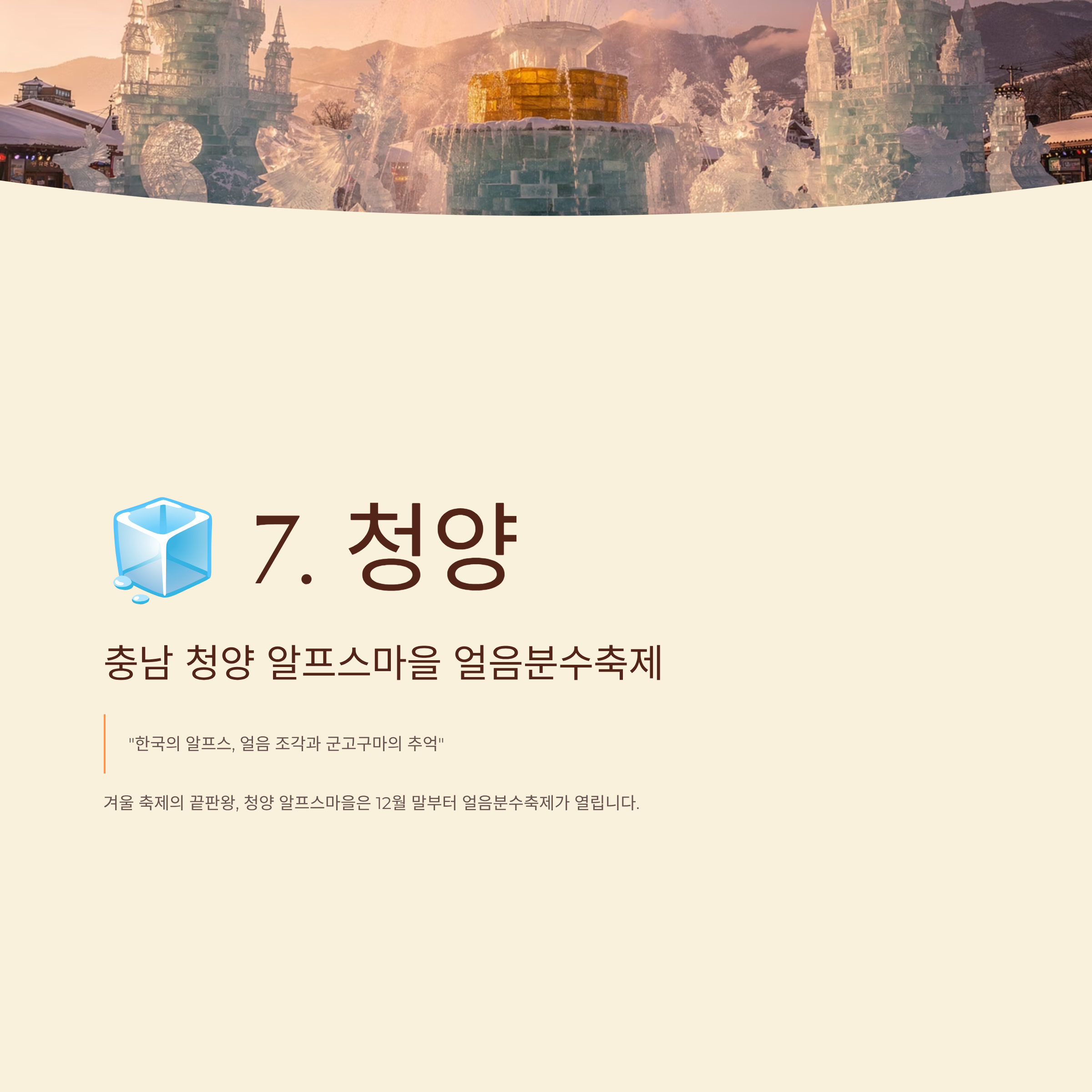 🧊 7. 충남 청양 알프스마을 얼음분수축제