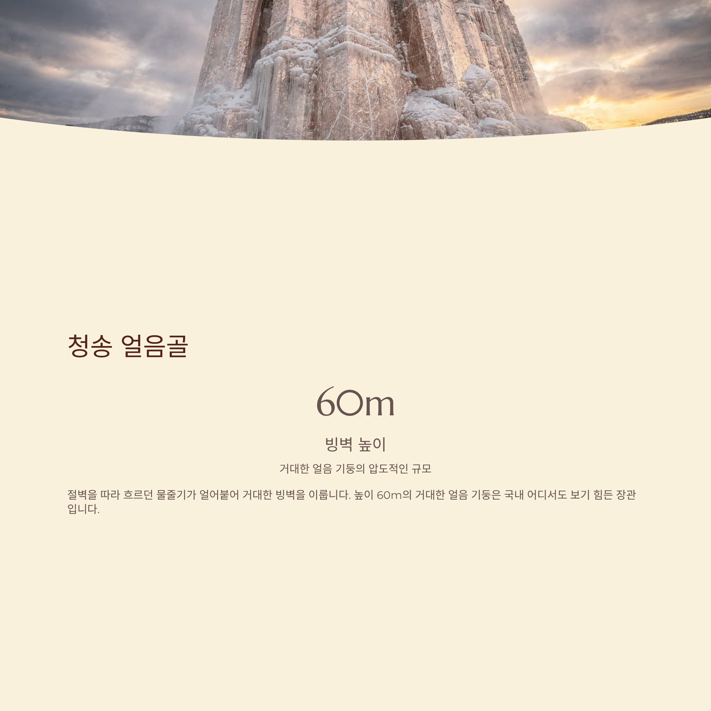 자연이 빚어낸 압도적인 얼음 조각품을 보고 싶다면 청송으로 떠나보세요.